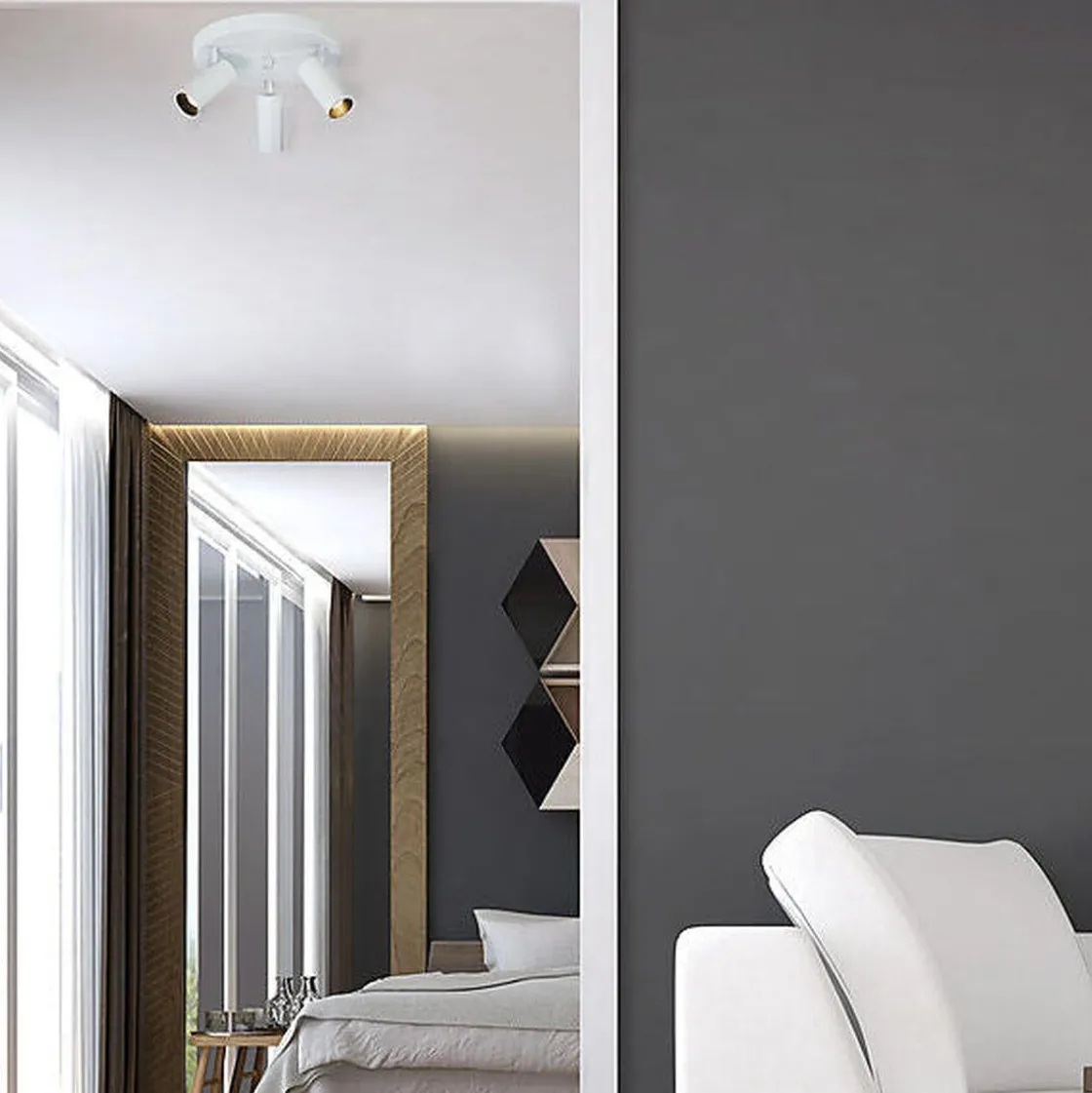 Concord er en stilig og praktisk blendefri takspot i mattlakkert metall som passer perfekt inn i de fleste hjem. De tre justerbare lampehodene har utskiftbare LED-lyskilder og innebygd antirefleksgitter. Concord sender ut et varmhvitt retningslys som kan dimmes. Antireflekslamellene er avtagbare hvis enda mer lys ønskes. Kombiner gjerne med våre andre lamper i Concord-familien.