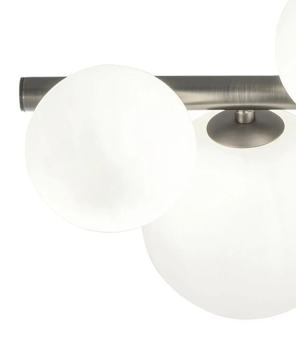 Molekyl er en nydelig og moderne taklampe med opalhvite glasskuler. Du behøver 7 stk lyspærer med G9-sokkel til lampen.