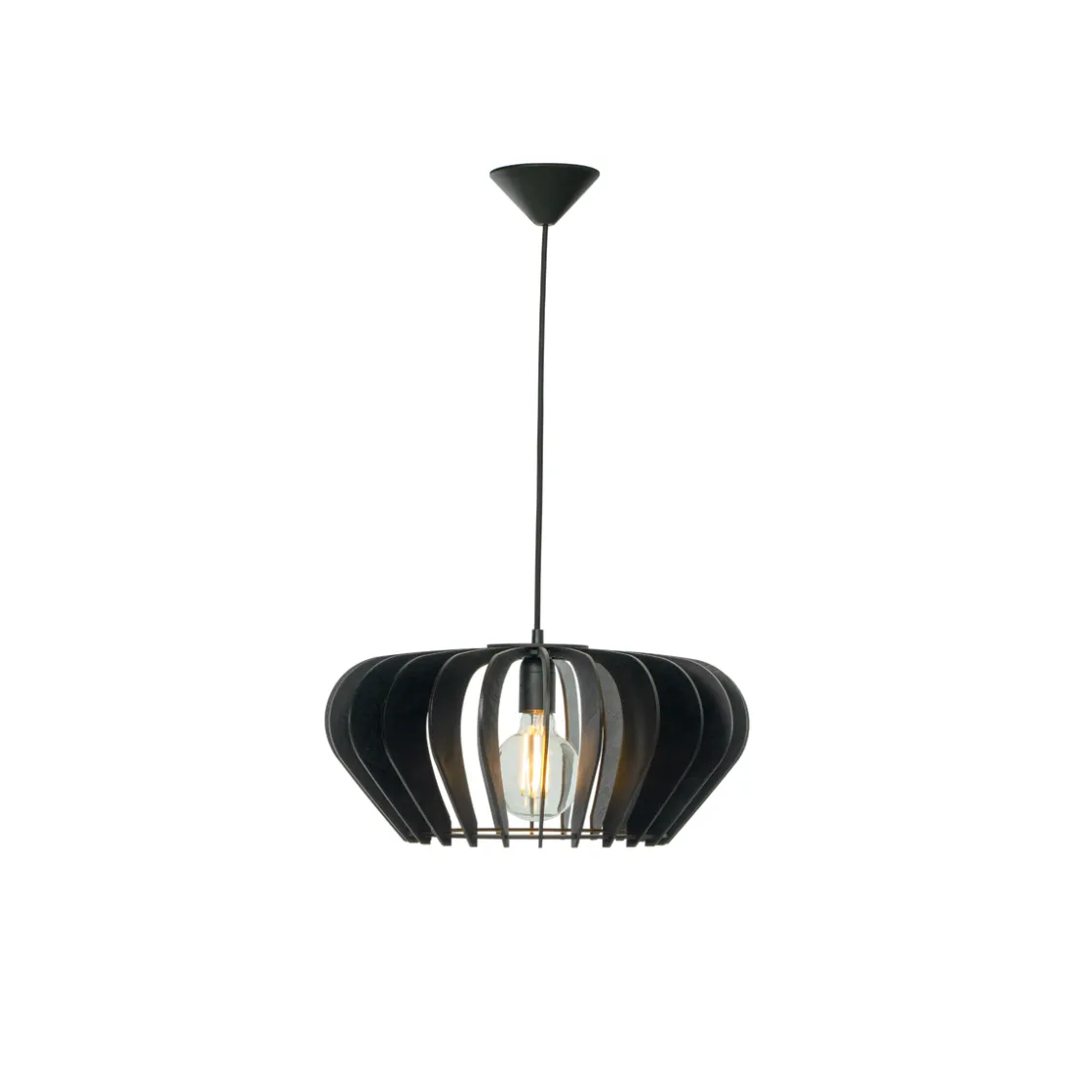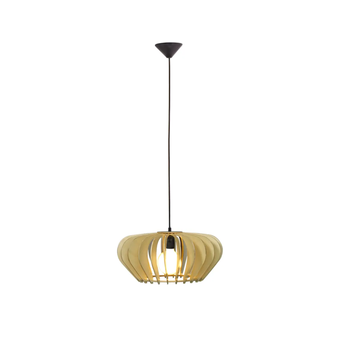 Den elegante taklampen Calyps består av plywoodlameller i myk rundet form som skaper en vakker lys- og skyggeeffekt.