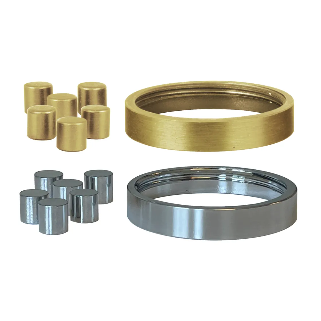 Epsilon kommer med doble sett med dekorative ringer og knotter, velg mellom krom eller matt messing avhengig av hva som passer best i akkurat ditt hjem. Lampen er justerbar i høyden hvor minimum totalhøyde er 40 cm og maksimum er 150 cm.