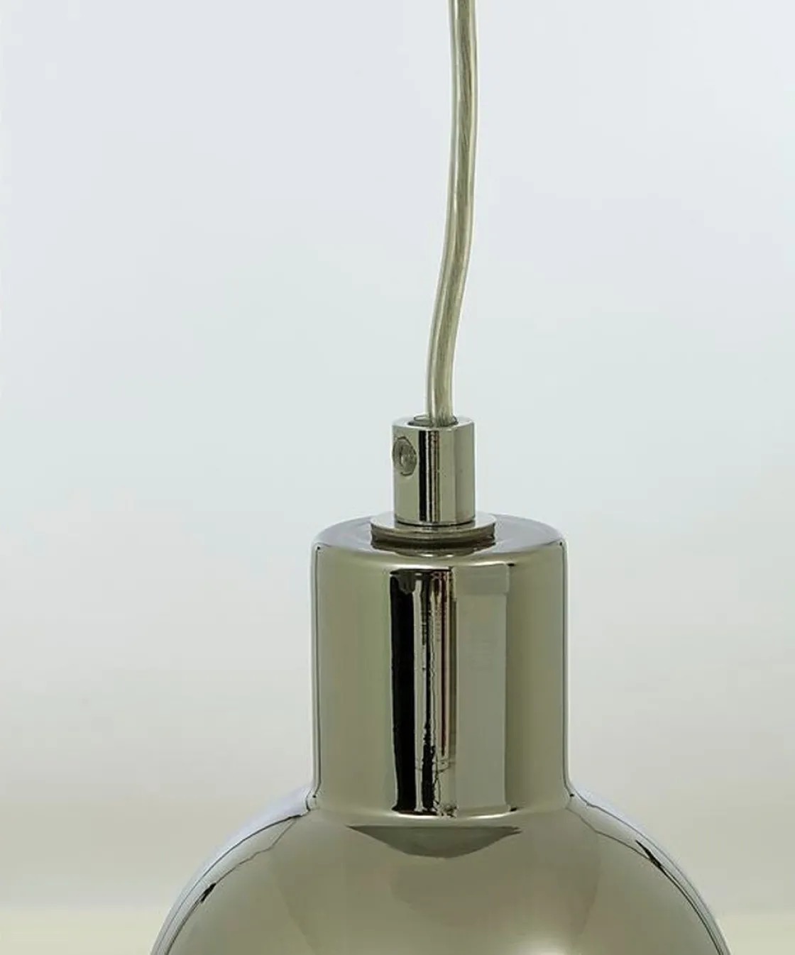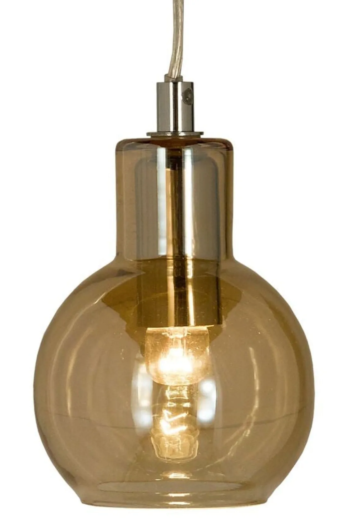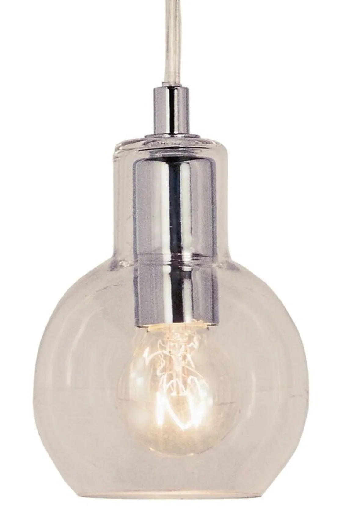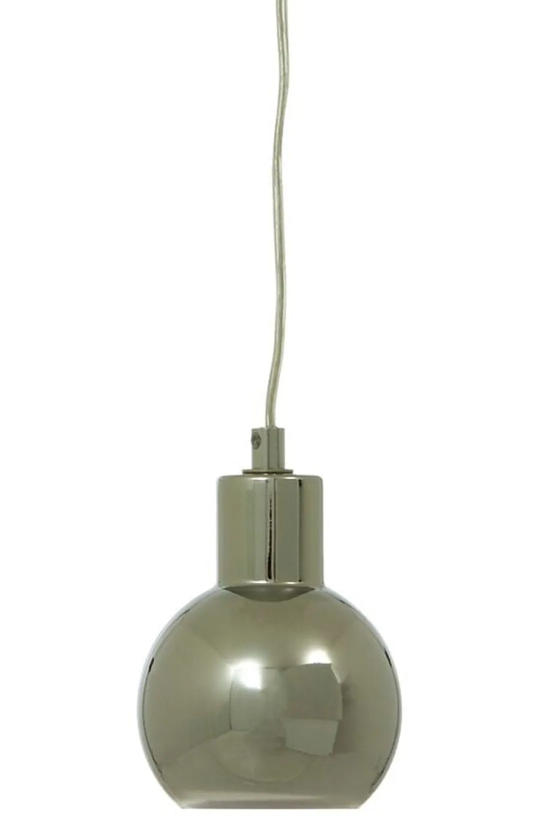 Leah vinduspendel i krom med glasspendel i fargen røk. Lampens hovedmateriale er metall/glass. Lyset tennes og slukkes med bryter på ledning. Ledning 4 meter. Maks wattstyrke 30W. Lampe monteres med brakett på ledning og strømtilkobling med støpsel.