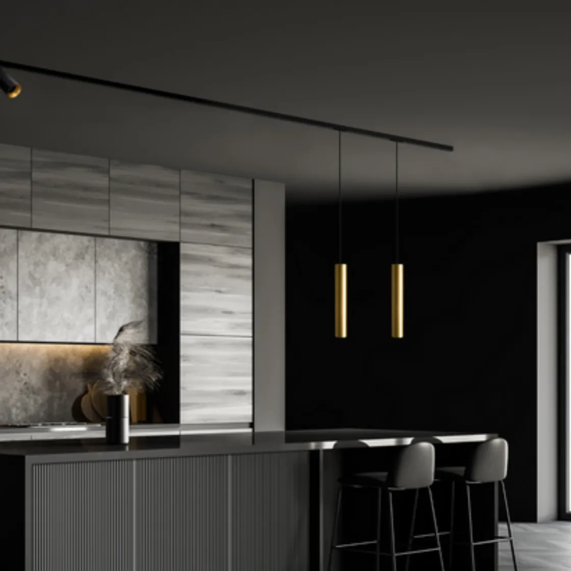 Tube flex er en stilren pendel som er tilgjengelig i fargene svart, rose gull, messing og titanium.