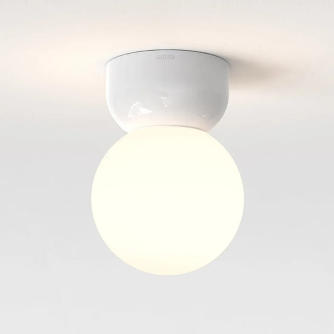 Med sin blanke hvite keramiske sokkel og glassskjerm tilfører Lyra komfortabel takbelysning til ethvert moderne bad. Den slanke designen gjør den til et ideelt valg for installasjon i andre små rom, som ganger og lagringsplasser.