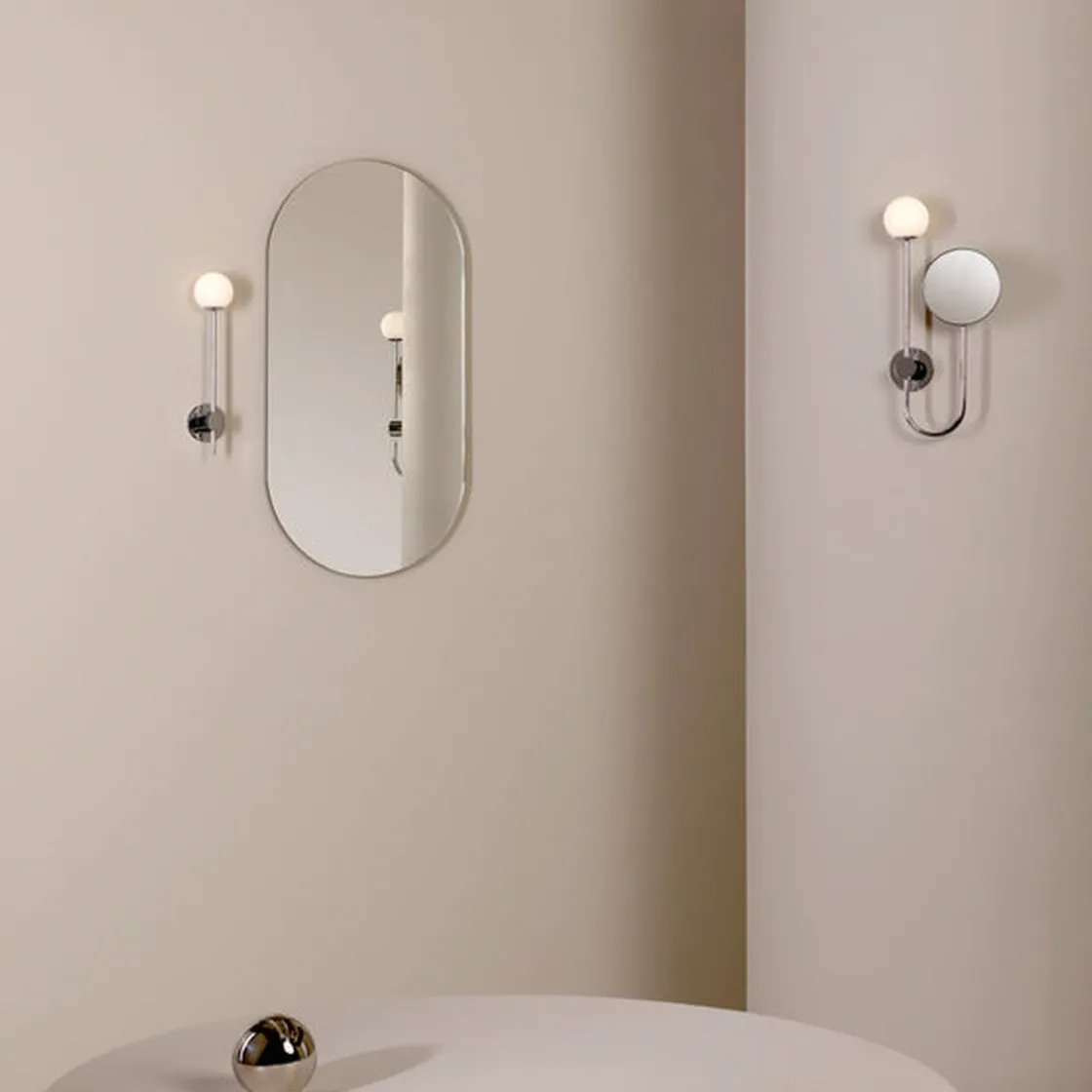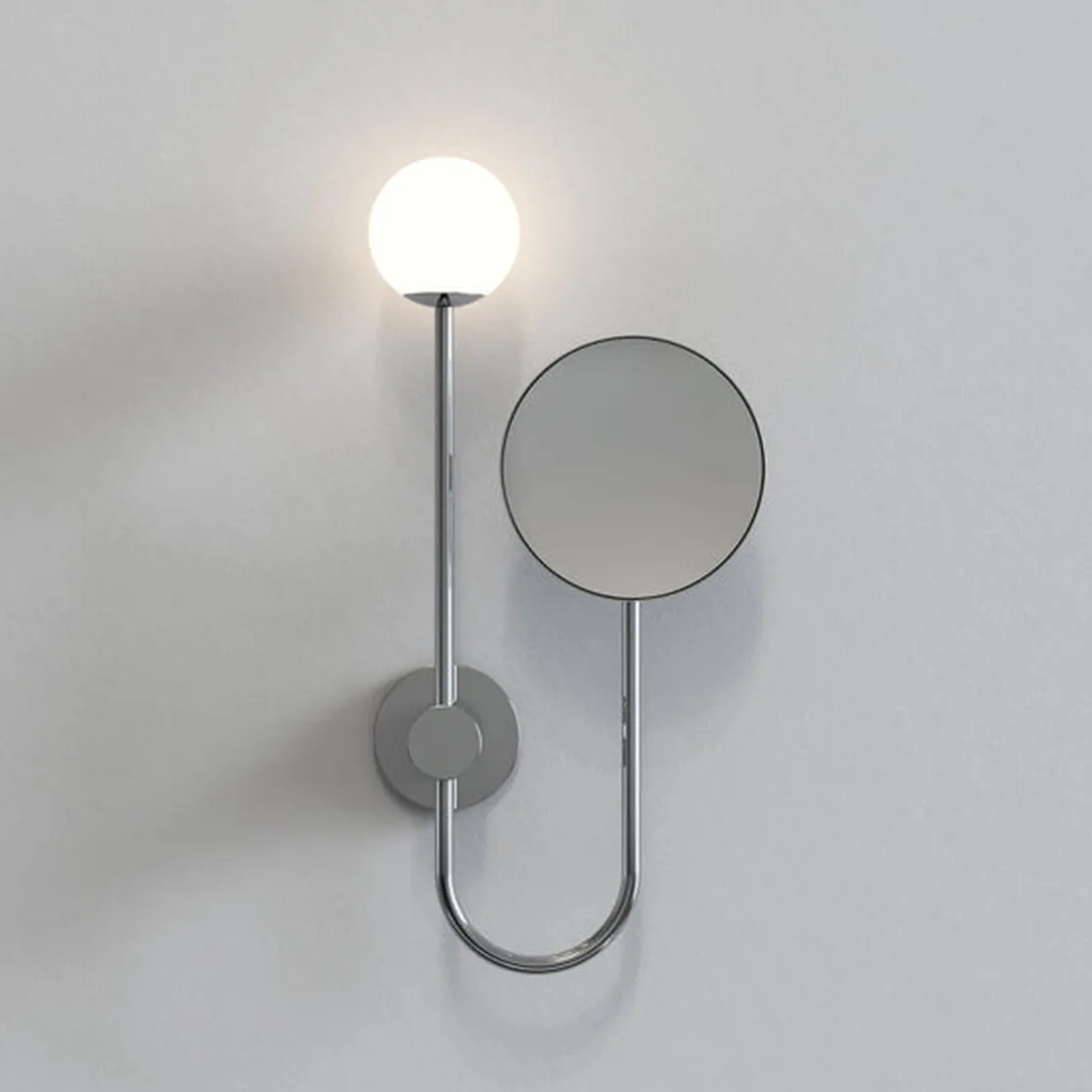 Orb er en stilren vegglampe med speil som kan benyttes på baderommet. Speilet er justerbart og har 5x zoom