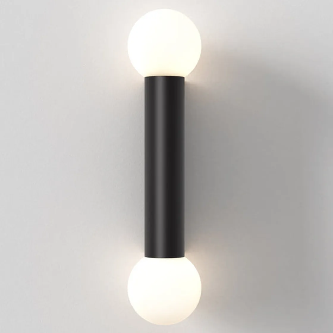 Den enkle og geometriske vegglampen til badet er designet for bruk sammen med speil og kan monteres vertikalt eller horisontalt. Kuppelen i opal glass sprer en omgivende glød.. IP44-klassifisert for sikker bruk for baderom.