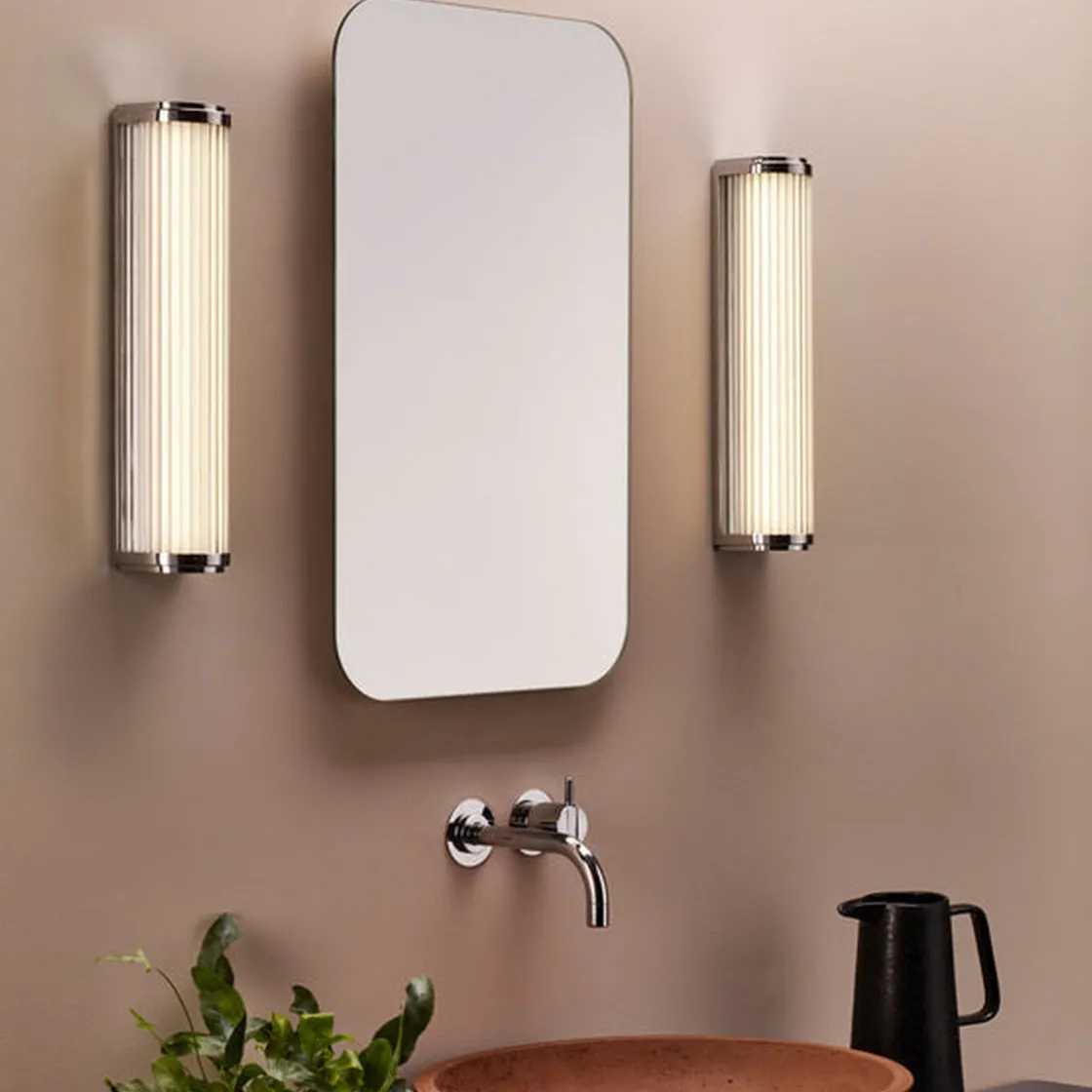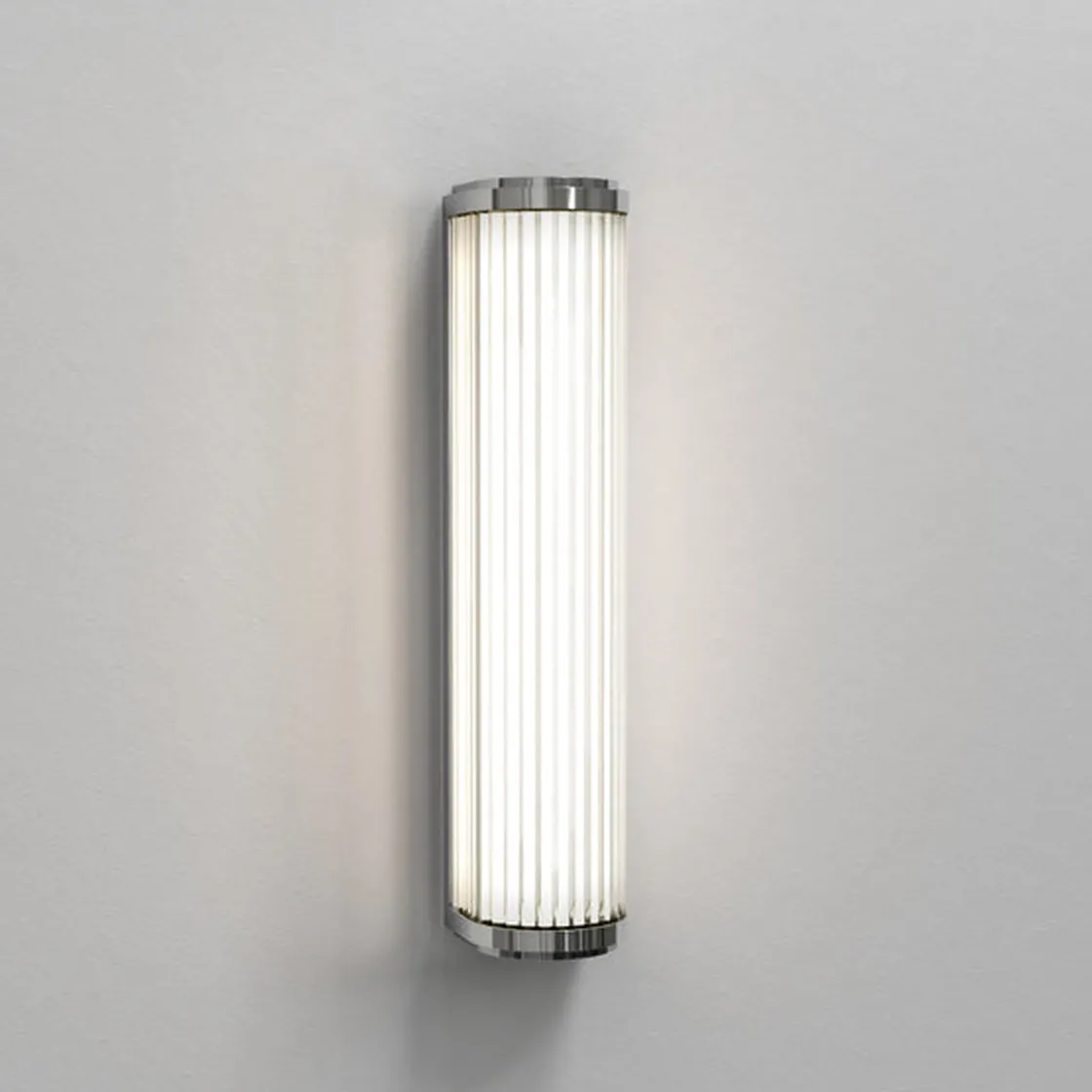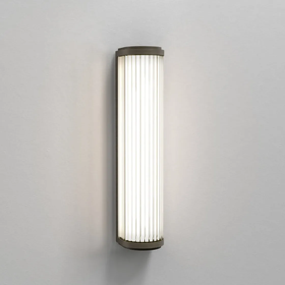 Vegglampen Versailles 370 er inspirert av klassiske design fra 1930 -tallet. Den er først og fremst beregnet for bad, men den strømlinjeformede designen utfyller ethvert rom. Laget av individuelle glass-stenger med bronse ende hetter, gir den funksjonell, blendingsfri oppgavebelysning som utstråler vintage-glamour.