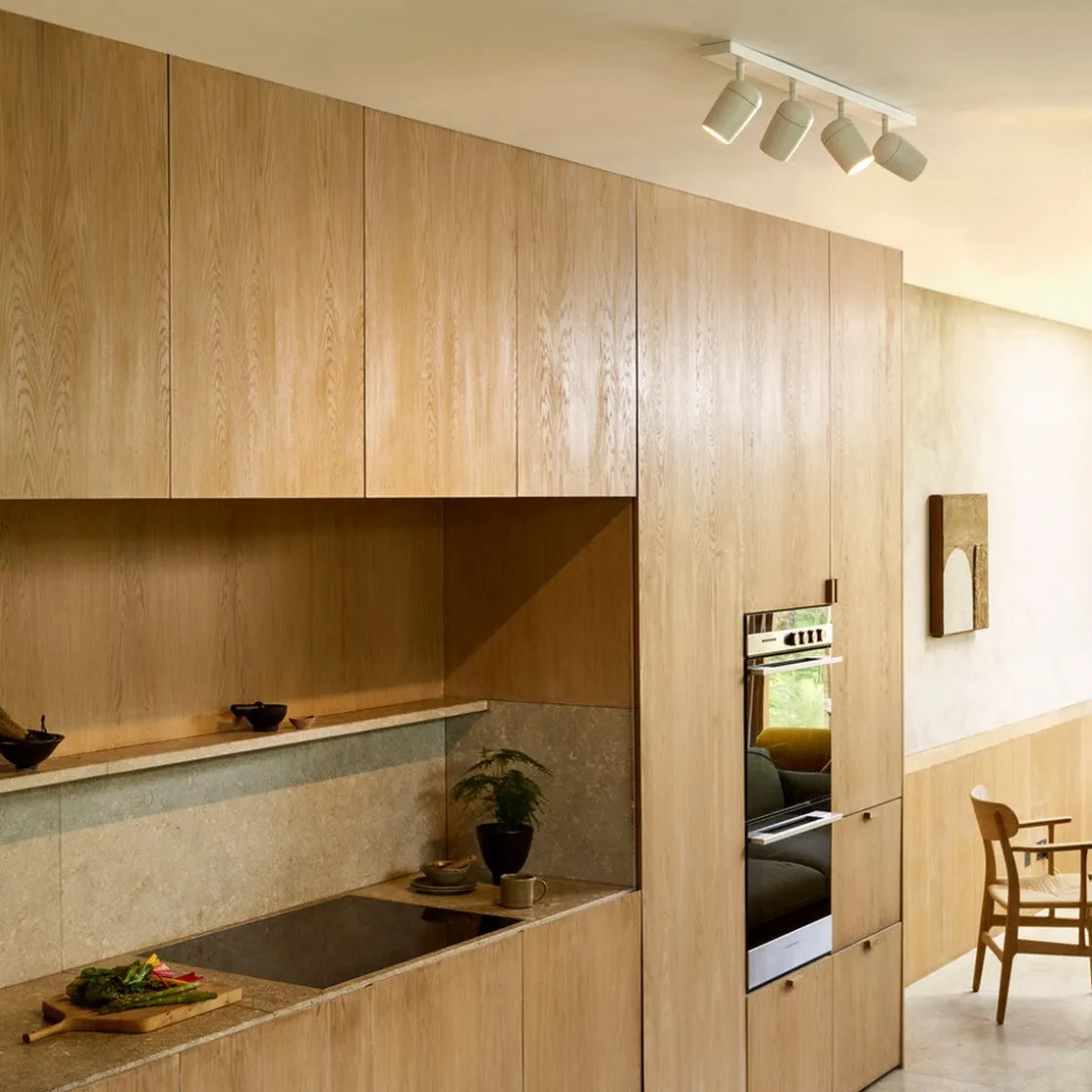 Med sine fire buede spotlight-hoder arrangert langs en rett stang, er Koto det perfekte valget for å legge til funksjonell, flerveis spotlight til hjemmet ditt. Takket være den allsidige designen kan Kotos fire spotlights justeres individuelt for å fokusere lyseffekten etter ønske, noe som gjør den til en ideell belysningsløsning for kjøkken, arbeidsområder, stuer og andre steder.