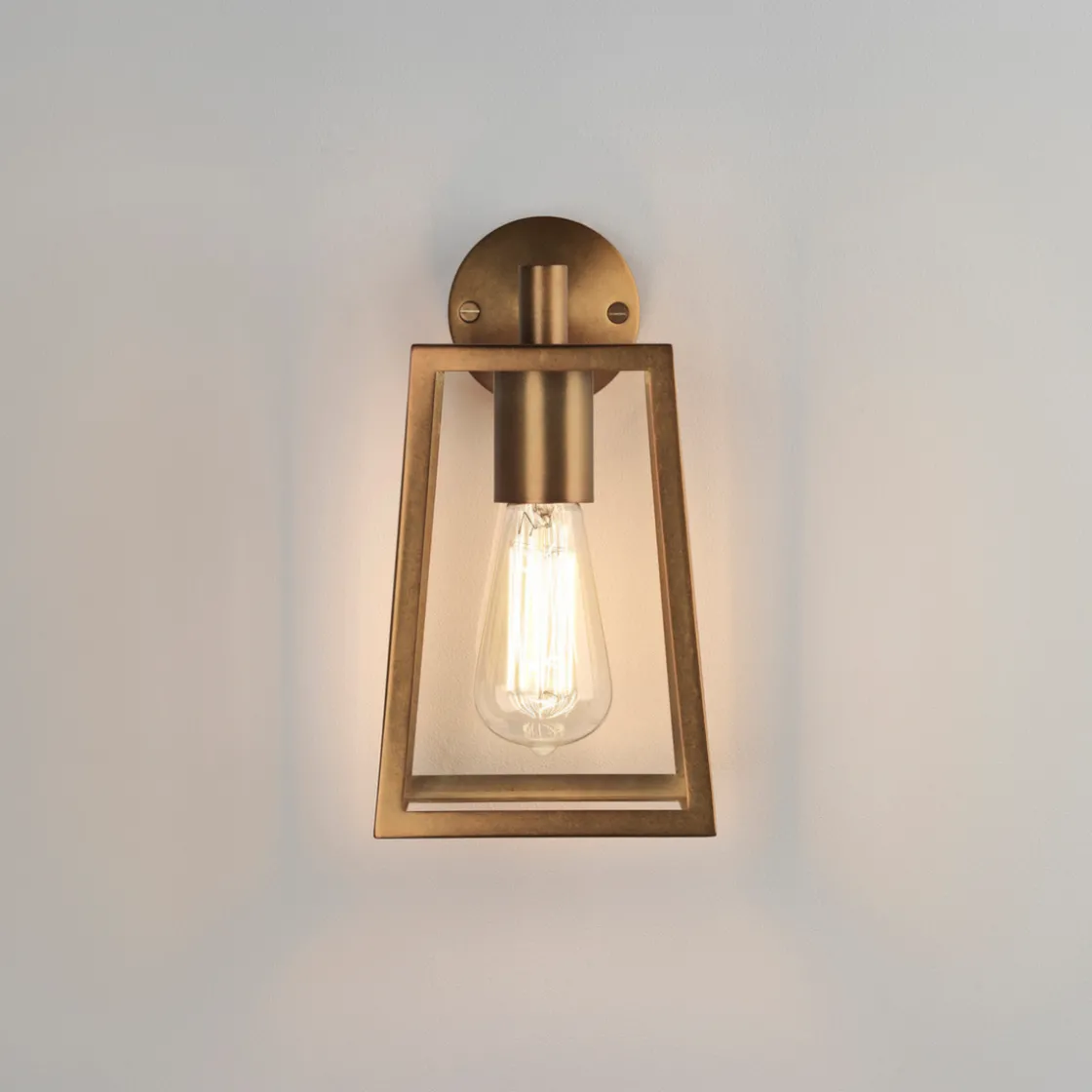 Nydelig vegglampe i antikk messing. Lampen kan dimmes dersom du benytter en dimbar lyspære og kobler lampen til en ekstern dimmer.