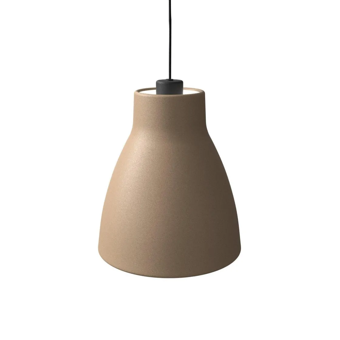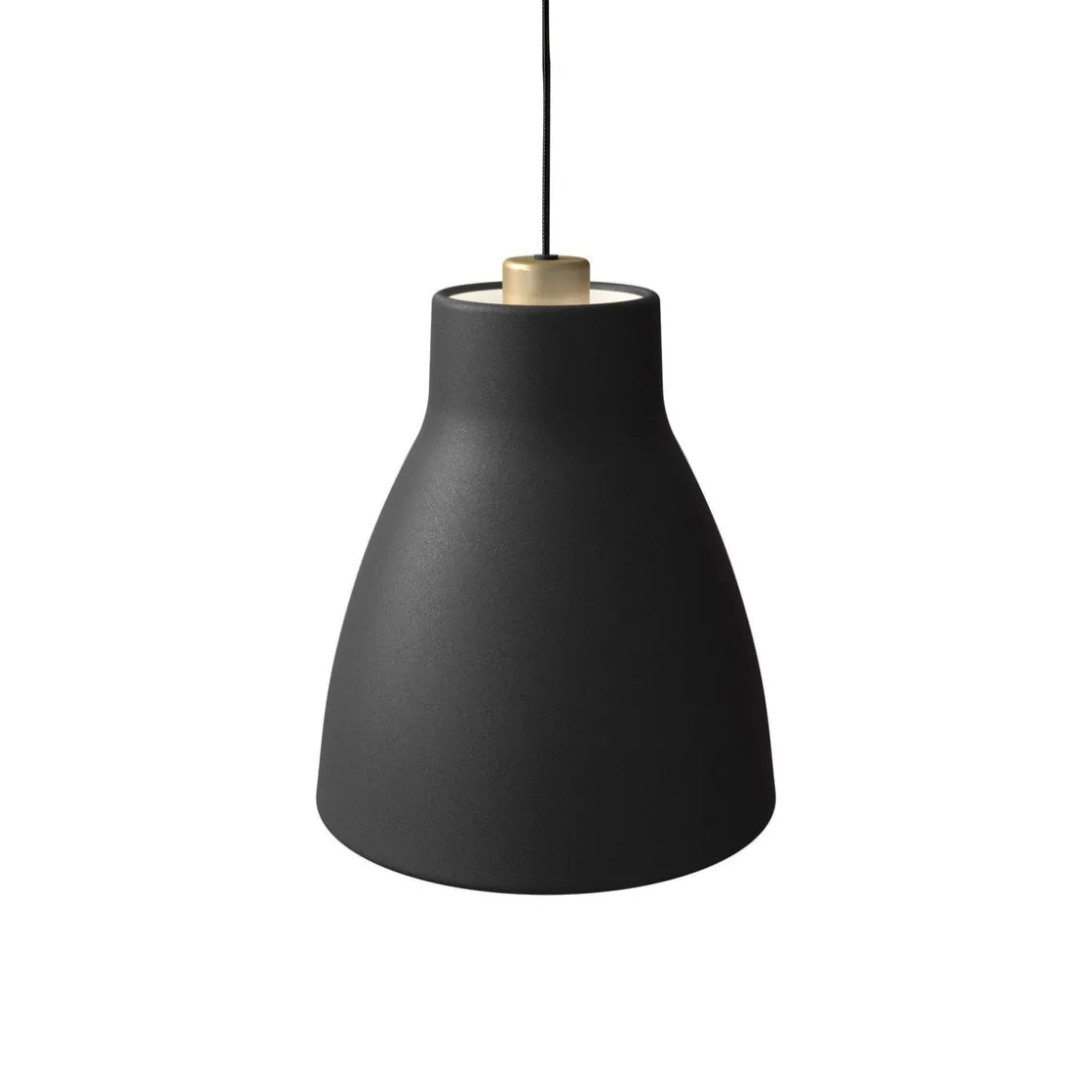 Gong ble designet av Carl&Carl. Deres idé fra begynnelsen var at den skulle ha blitt støpt i betong, men etter hvert som produksjonen vår fokuserer på metallplater, valgte vi å fullføre skjermen med en tungt rullet kant både opp og ned. Dette er for å få en følelse av tykkelse og vekt i armaturen. Dette resulterte i en rolig og tidløs enkel form som passer inn i mange miljøer. Den dype skjermen lar deg velge mellom et bredt spekter av E27 lyskilder. Siden skjermen er åpen på toppen, gir den også et lys oppover, lyset som reflekteres i taket, lyser kontrastene i rommet. Toppen har en aksent farge som er opplyst av opplyset, og dette gir pendelen en ekstra touch.