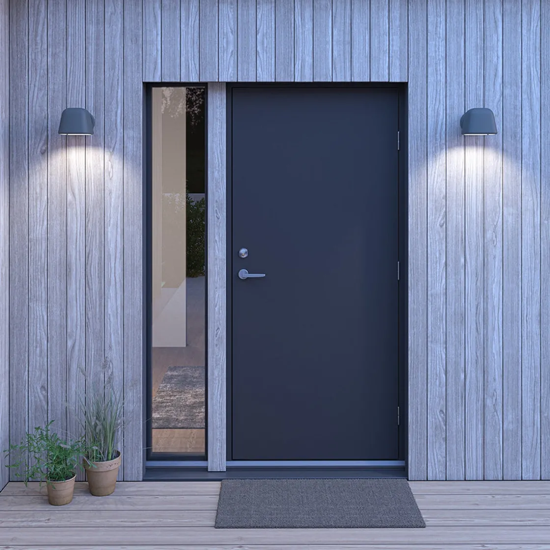 Lampene er laget av resirkulert aluminium med en vakker tekstur i overflaten. Begge variantene kommer i pulverlakkert værbestandig grafitt, rust og svart tekstur.