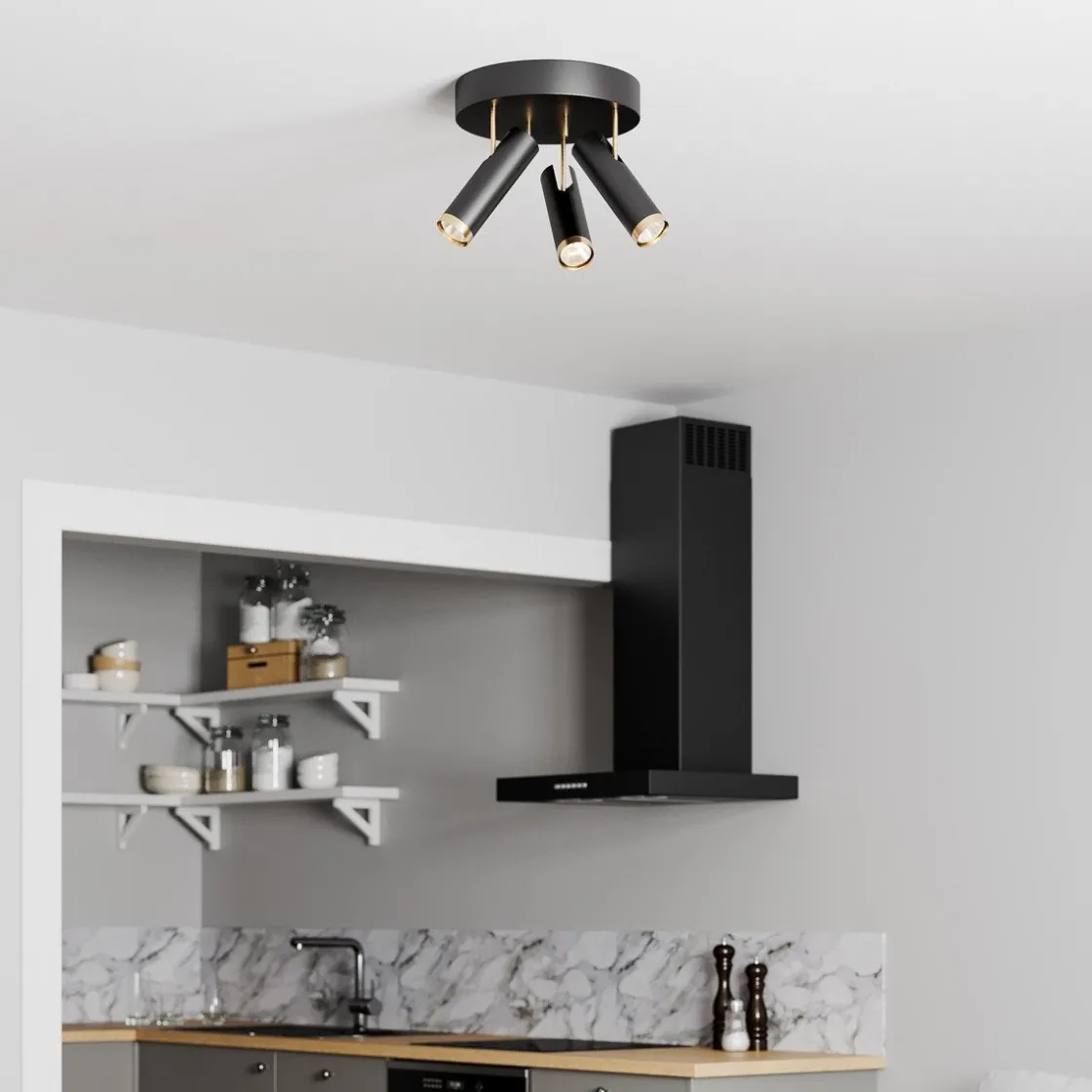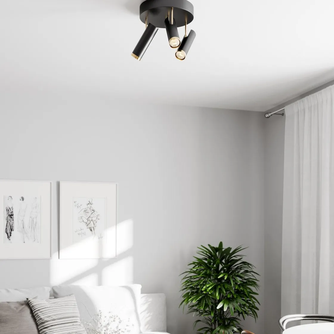 En moderne spotlight med tre bevegelige spoter i sort og gullfarget metall som passer fint i entreen, kjøkkenet og stuen. Takspoten gir et luksuriøst sett med lamper som du kan justere dit du vil for å skape et bestemt lysskinn mot forskjellige gjenstander. Når du kjøper takspoten, bør du også kjøpe til tre lyskilder med GU10-sokkel. Puls-takspot er enkel å montere, sitter stødig på plass og gir et effektivt og behagelig lys.
