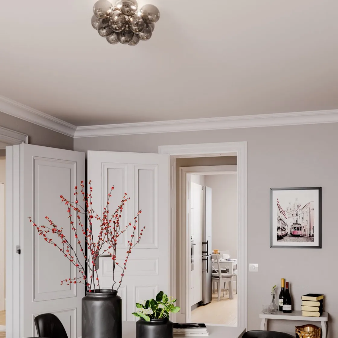 Den populære Gross er utvidet med en ekstra artikkel, nemlig takplafond. Vakre og skinnende kuler kan nå henge i gangen din eller i soverommet alene eller som et supplement til de andre lysene i serien. Plafonden er 20 cm høyt og inkluderer 12 glass.