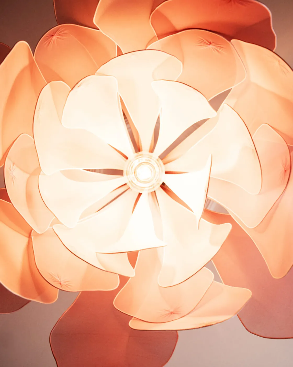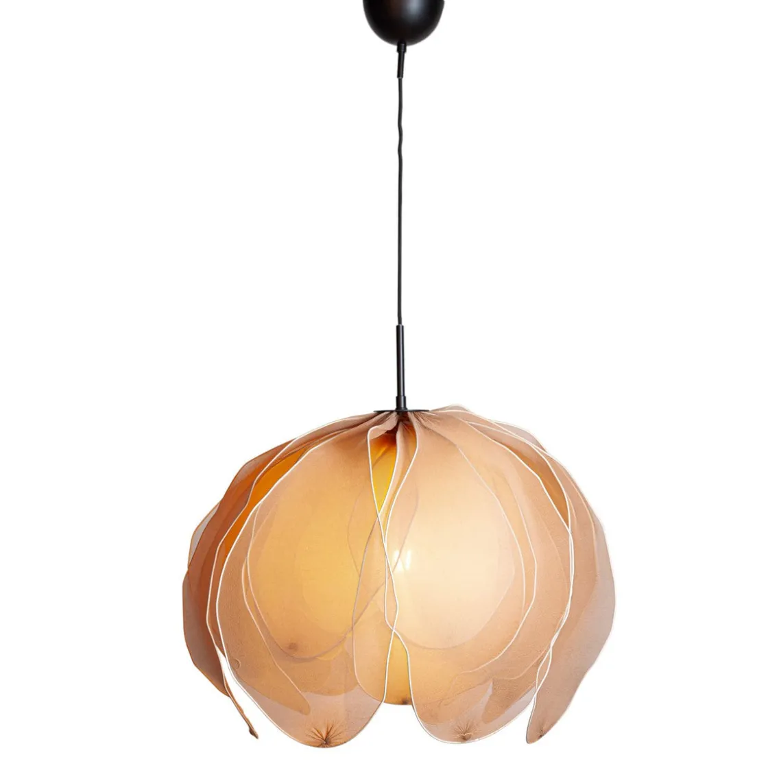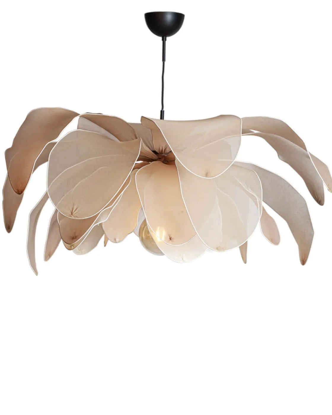 Med sine fem lag bøyelige stoffblader i forskjellige toner gir denne lampen deg friheten til å forme den etter dine ønsker. Skjermens imponerende 80 cm i diameter og 59 cm i høyden skaper en praktfull tilstedeværelse i rommet ditt.