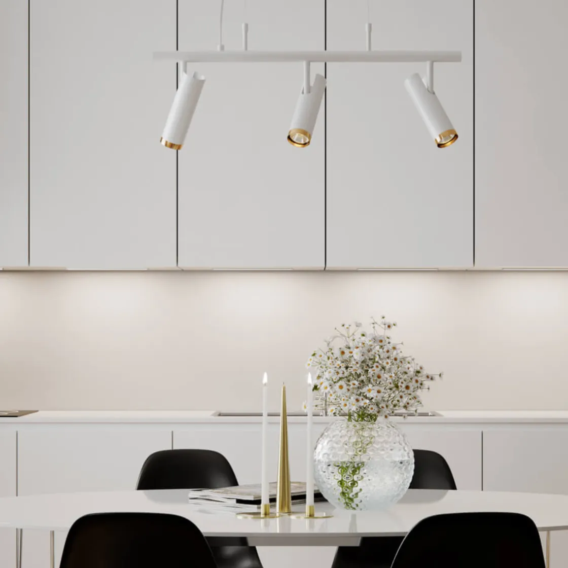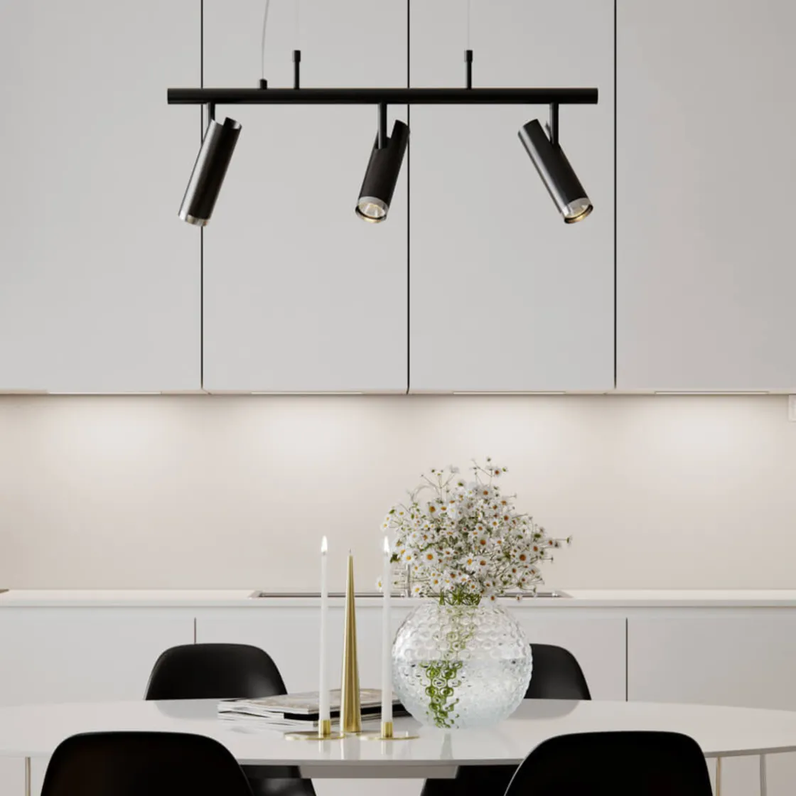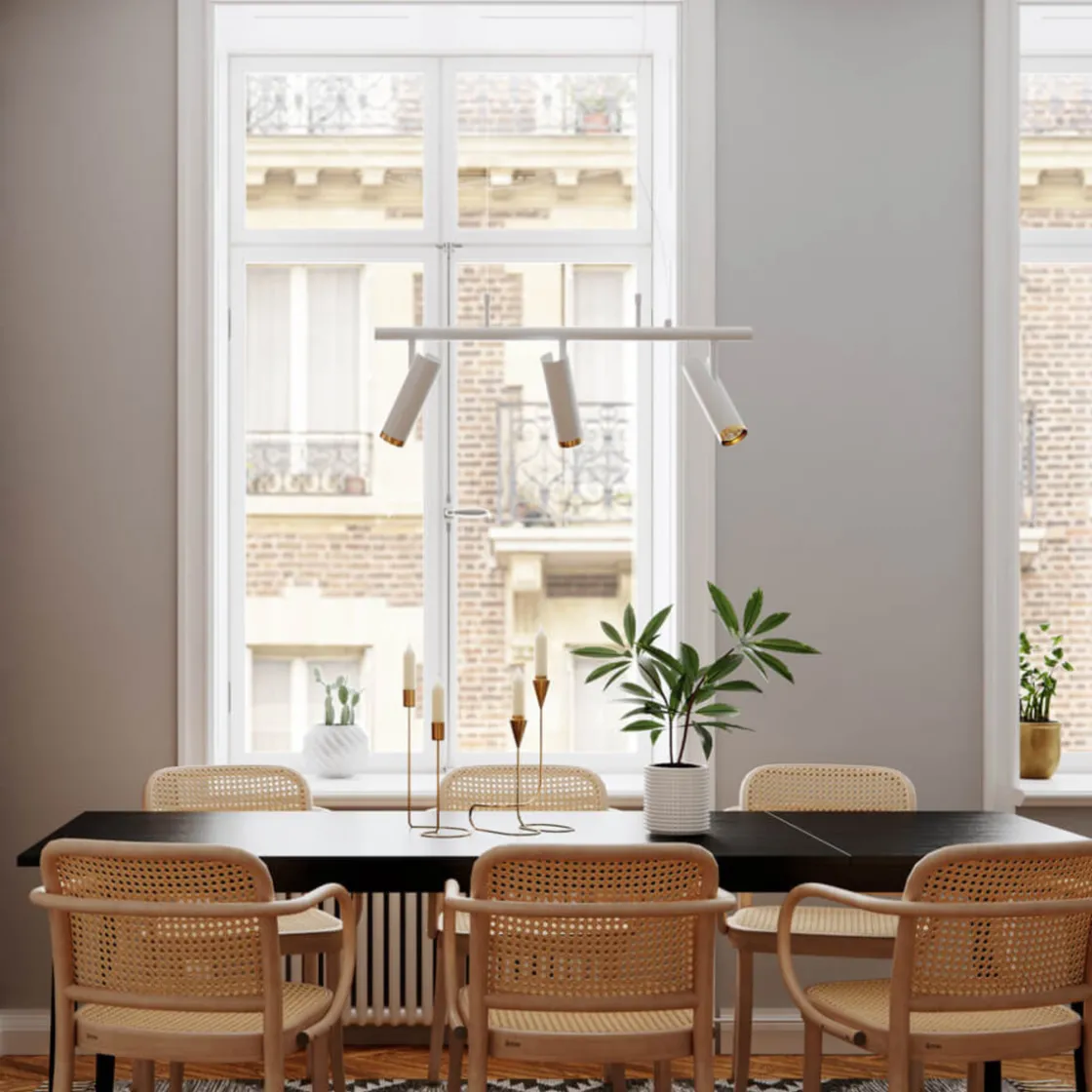 Leter du etter en stilig taklampe som gir deg fleksibilitet og mulighet til å skape et personlig preg i hjemmet ditt? Da er taklampen Puls Bar det perfekte valget for deg. Denne moderne taklampen er designet med tre retningsbestemte spotlights på en fleksibel skinne, som gir deg muligheten til å justere lysretningen og fokusere det akkurat der du vil ha det.