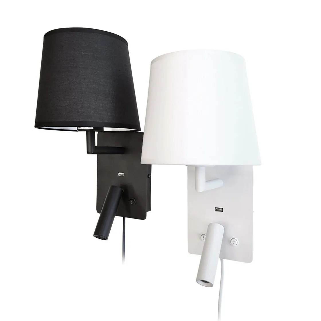 Denver er en stilfull og moderne vegglampe med USB tilkobling for ladning av mobil telefonen. Selve hovedlyset har utskiftbar lyspære, medfølger ikke. Leselys har integrert LED.