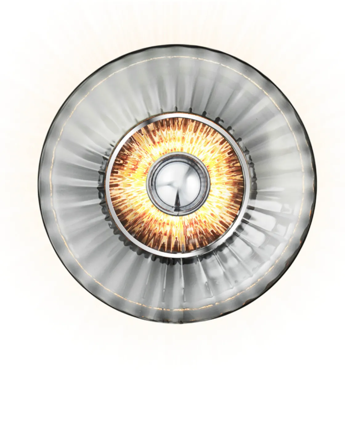 New Wave vegglampen er en ikonisk juvel for hjemmet ditt. Det optiske glasset kaster et vakkert bølget lys til veggen, som ingen andre dekorlys. Lampen kan monteres på både vegg og tak. New wave lampen er ett godt eksempel på hvordan en lampe kan skape ett helt rom. Alle lampene i New Wave serien er laget av munnblåste bølgete glass med med en håndmalt kant i gull.