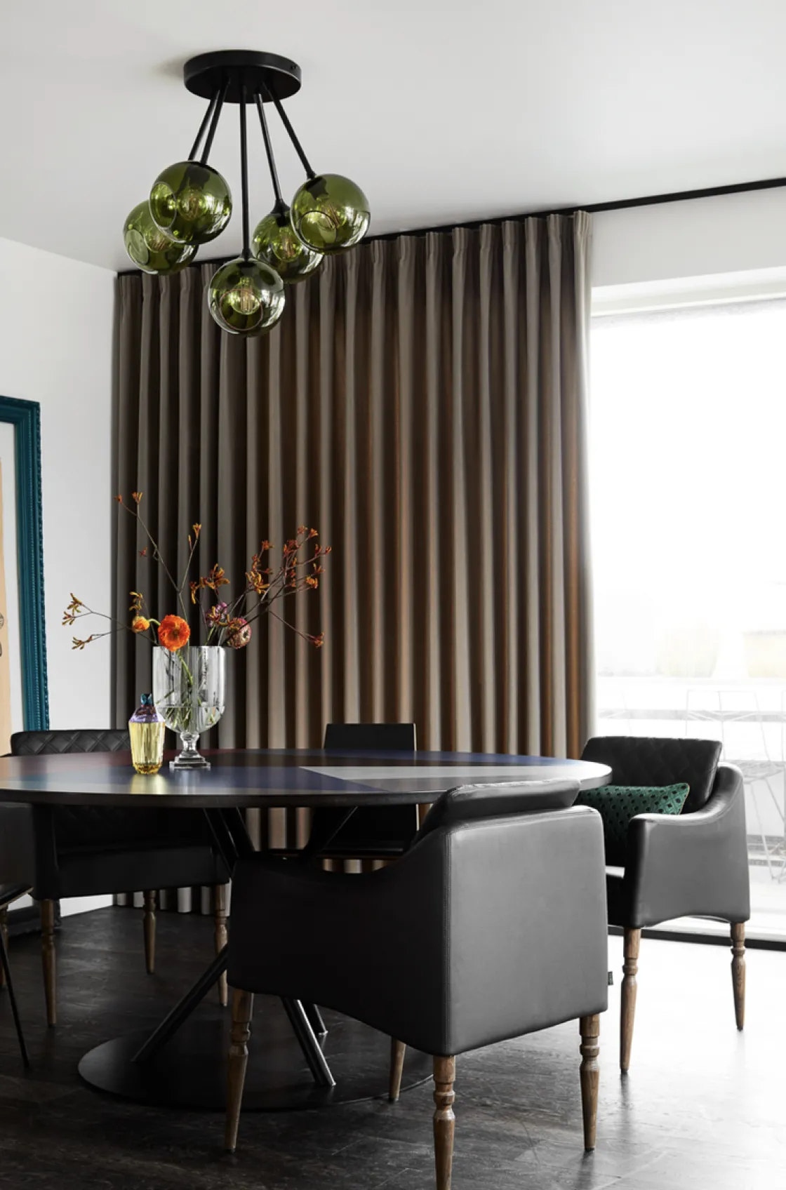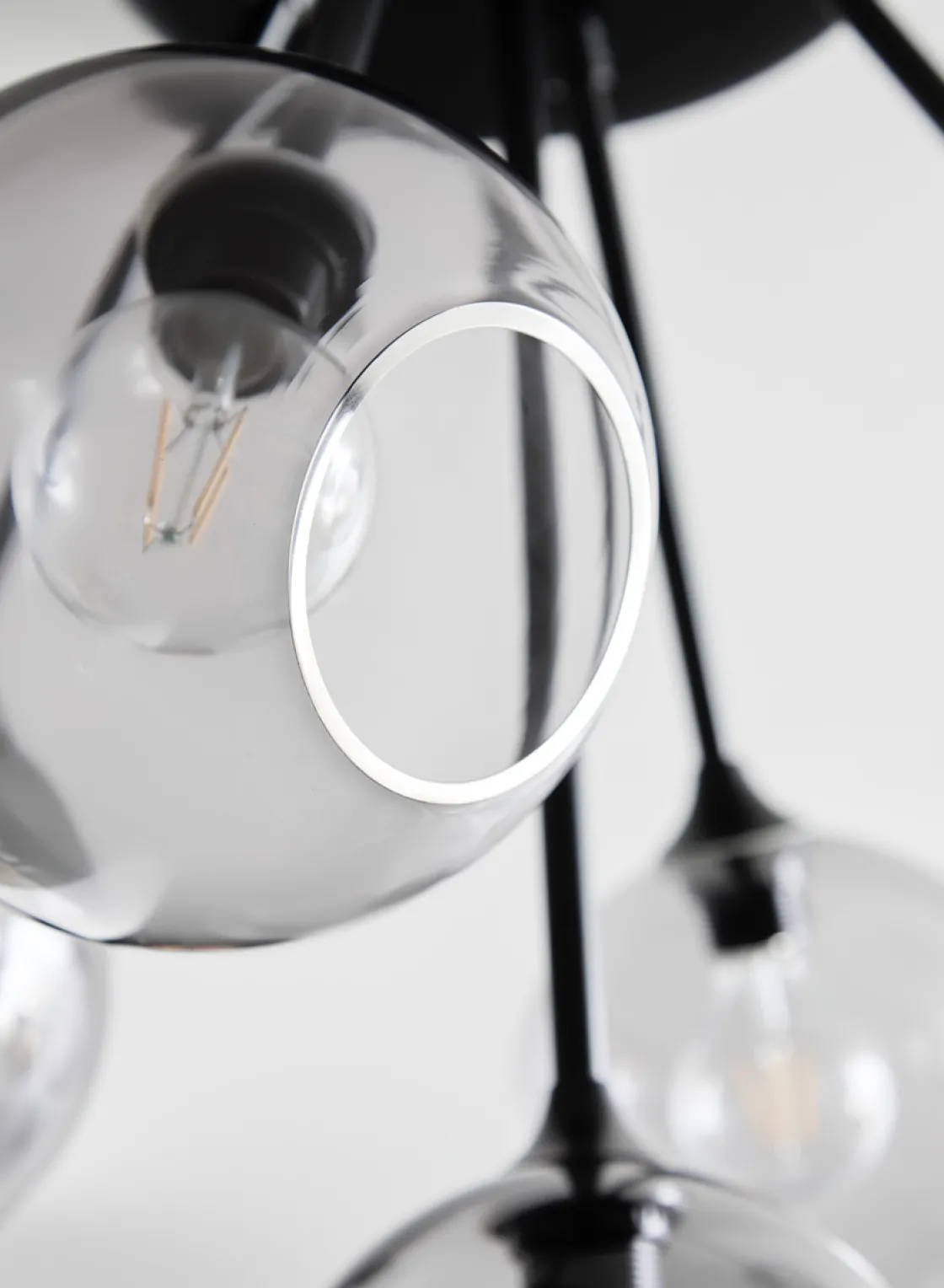 Ballroom Molecule lysekronen fra Design By Us er deres tolkning av en moderne og funksjonell lysekrone. Dette er kronjuvelen til Ballroom-serien, i form av en femarmet lysekrone som skiller seg ut hvor som helst. Ballroom Molecule taklampe er en dekorativ lampe med munnblåst- og håndmalt glass. Den fine kanten i glasset er håndmalt. Ballroom har et elegant uttrykk og skaper en behagelig belysning. Taklampen er perfekt å ha hengende i gangen, stuen, soverommet eller i ett rom hvor du ønsker vakker belysning. Vær oppmerksom på at lampen selges uten lyspærer. Fem lyspærer kreves for denne lampen.