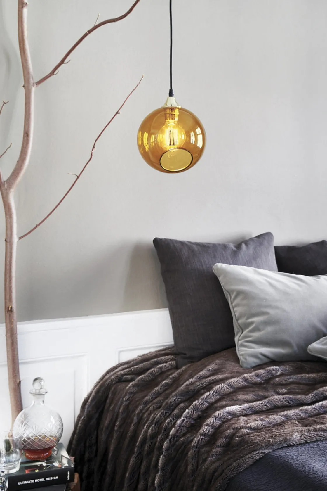 Ballroom taklampe fra Design By Us er en enkel og vakker takpendel med flotte detaljer. Den klassiske formen kombinert med det gullbelagte opphenget gjør denne lampen tidløs. Glasskuppelen er munnblåst og håndmalt. Kanten på det fasetterte hullet er malt i gull som en vakker detalj.