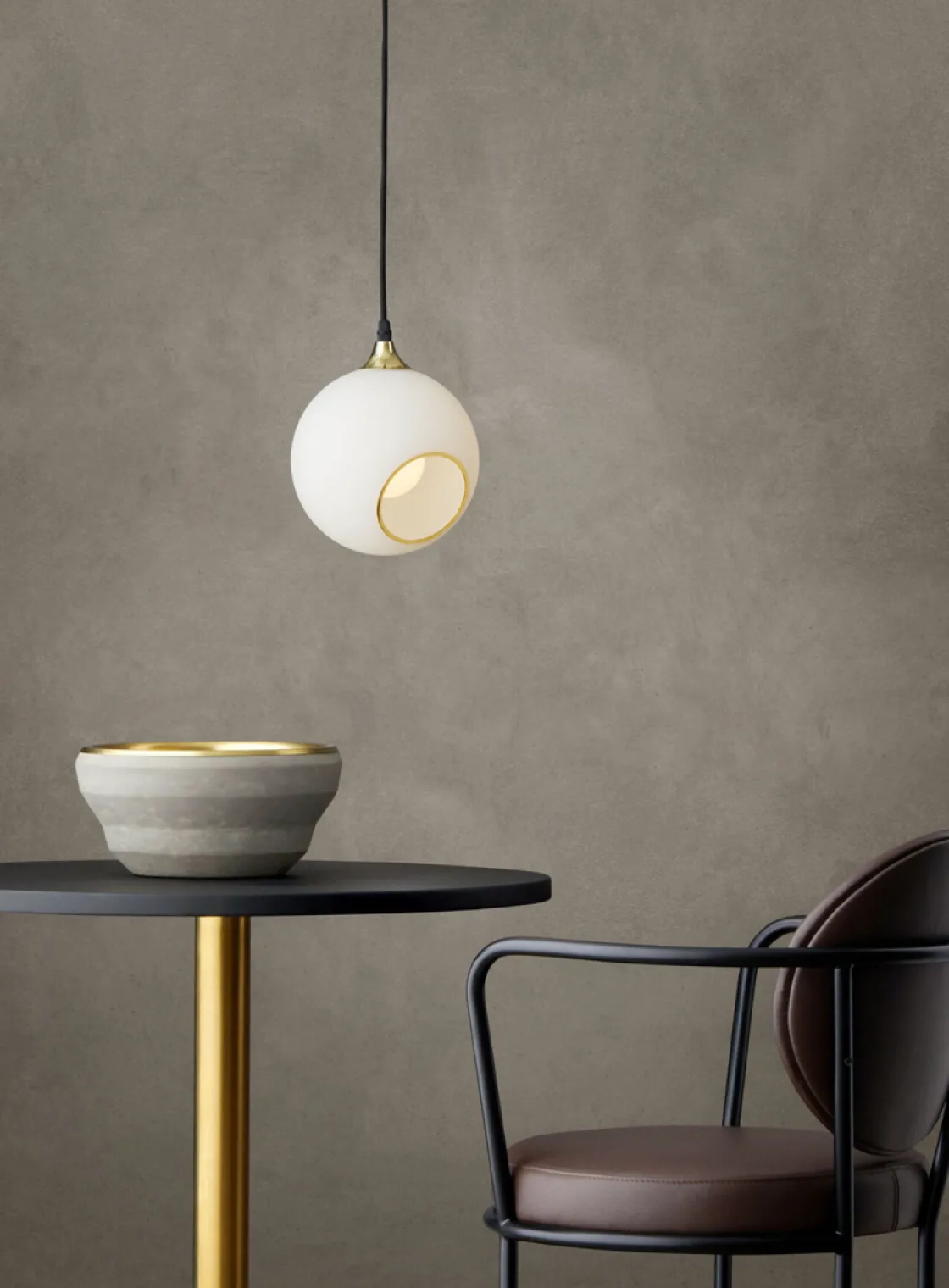 Ballroom taklampe fra Design By Us er en enkel og vakker takpendel med flotte detaljer. Den klassiske formen kombinert med det gullbelagte opphenget gjør denne lampen tidløs. Glasskuppelen er munnblåst og håndmalt. Kanten på det fasetterte hullet er malt i gull som en vakker detalj.