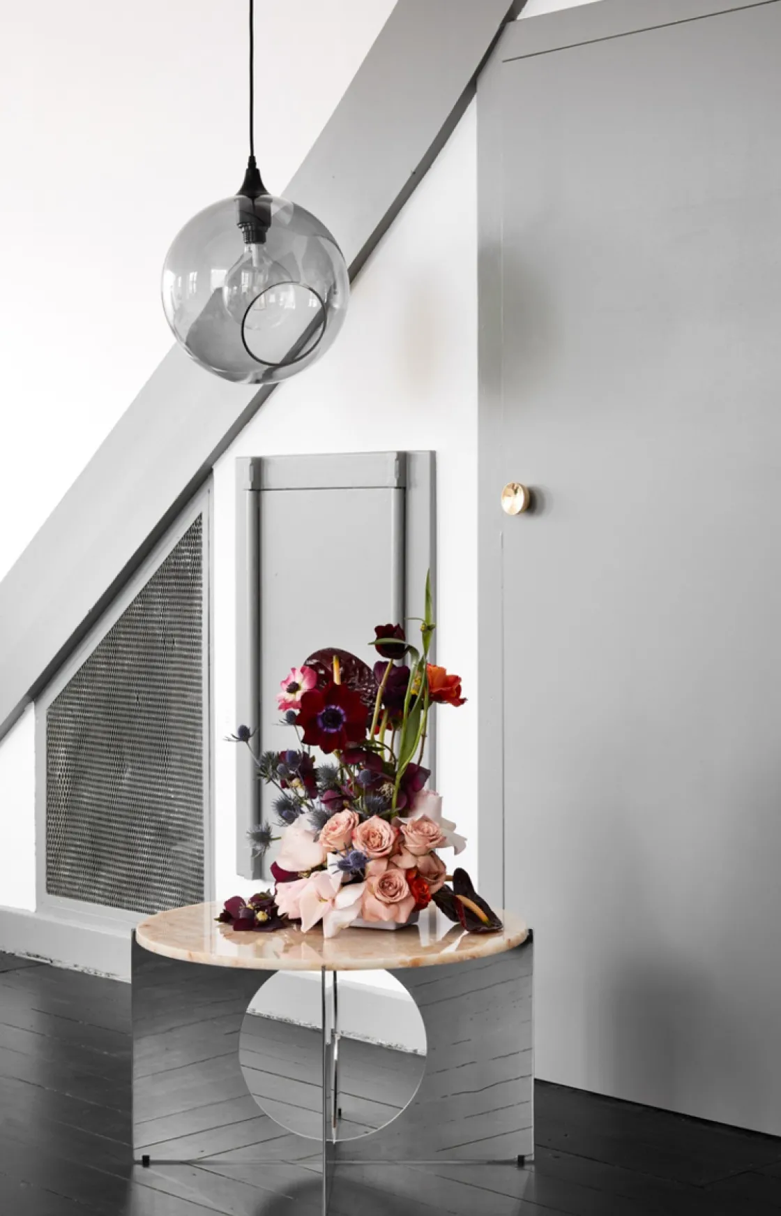 Ballroom taklampe fra Design By Us er en enkel og vakker takpendel med flotte detaljer. Den klassiske formen kombinert med det sorte opphenget gjør denne lampen tidløs. Glasskuppelen er munnblåst og håndmalt. Kanten på det fasetterte hullet er malt i sølv som en vakker detalj.