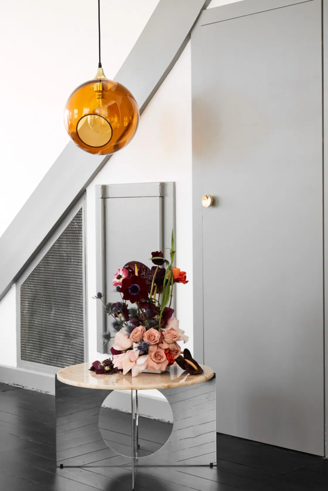 Ballroom taklampe fra Design By Us er en enkel og vakker takpendel med flotte detaljer. Den klassiske formen kombinert med det messingfargede opphenget gjør denne lampen tidløs. Glasskuppelen er munnblåst og håndmalt. Kanten på det fasetterte hullet er malt i gull som en vakker detalj.
