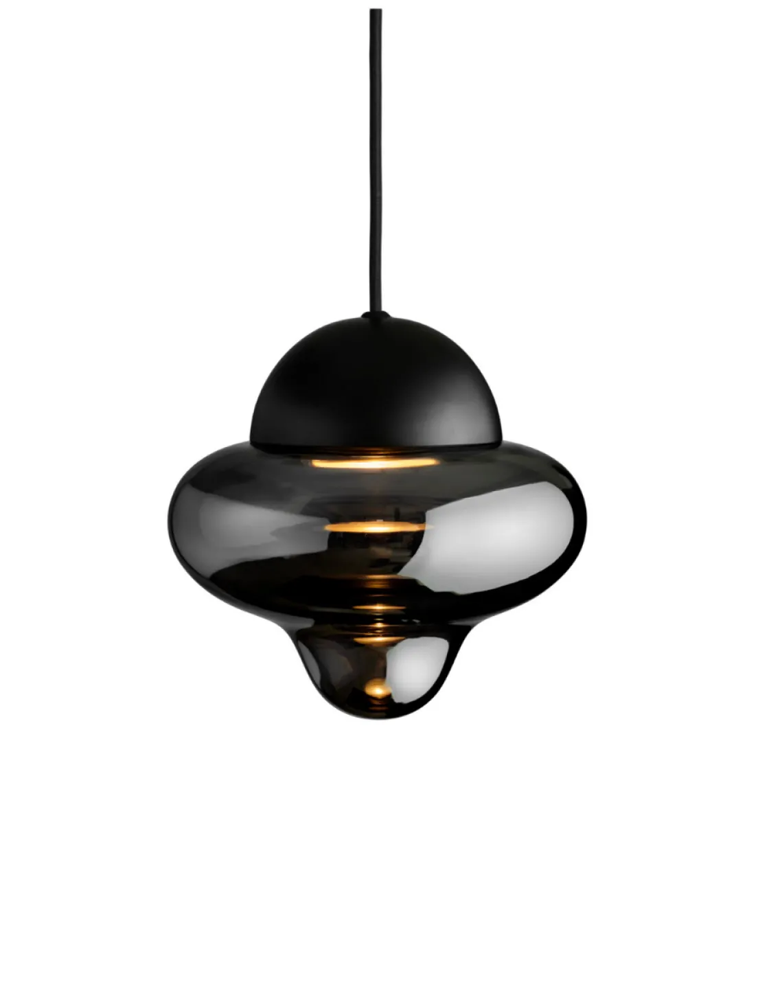 Nutty takpendel fra Design By Us er en vakker og iøyenfallende takpendel i glass. Du kan velge oppheng i sort, messing eller sølv så du finner den kombinasjonen som passer perfekt for deg. De har her brukt eikenøtten som inspirasjon til denne nye lampen. Den er litt nøtteaktig, og det er derfor de kaller denne nye taklampen Nutty. Denne lampen har integrert LED. Pendelkolleksjonen er basert på to størrelser, Nutty & Nutty XL.