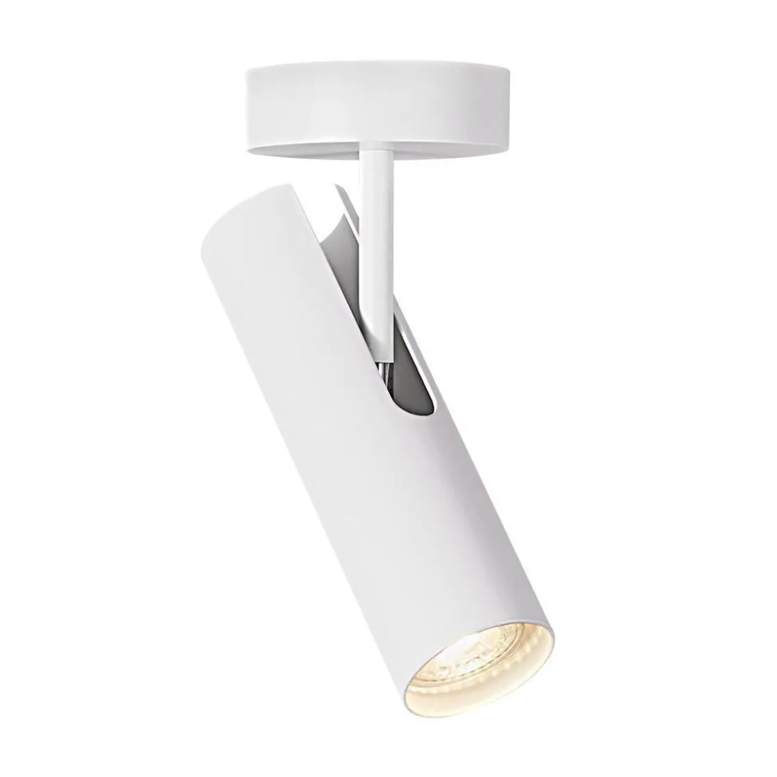 MIB-serien har blitt utvidet med en elegant og minimalistisk spot til takmontering. Spoten er utviklet for å kunne monteres direkte over strømuttaket i taket. Derfor er det ingen på/av-knapp på lampen – dette styres på bryteren på veggen. Det slanke og justerbare lampehodet kan vendes mot det stedet du trenger lys. Det vakre og enkle designet har et minimalistisk uttrykk og vil passe til mange stiler og innredninger. MIB-serien er designet av Bønnelycke mdd.