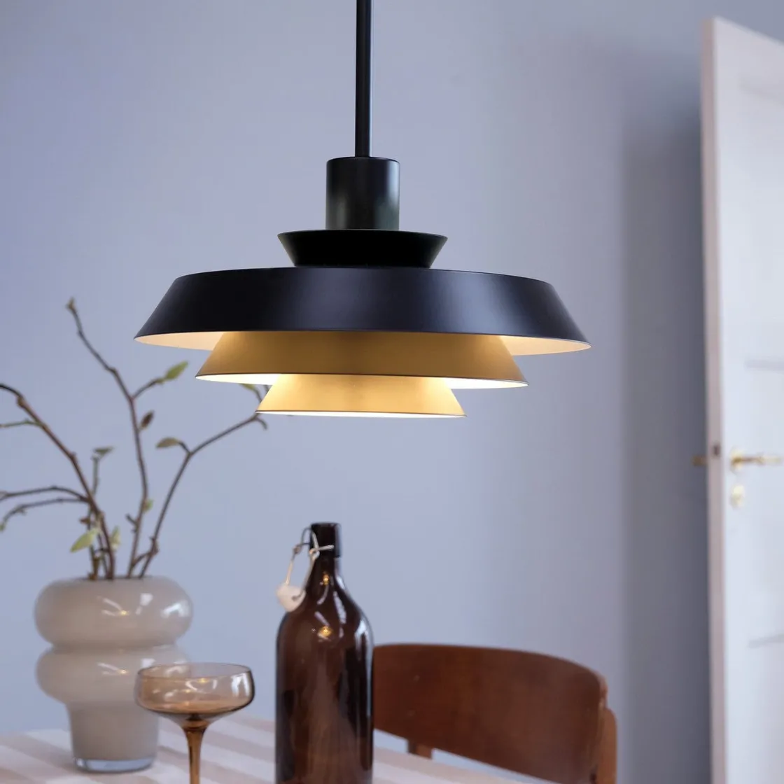 Oppgrader belysningen din over spisebordet, i kjøkken-spisestuen, gangen eller i et rom og nyt skandinavisk minimalisme og et varmt og koselig lys med DL30 pendellampe.