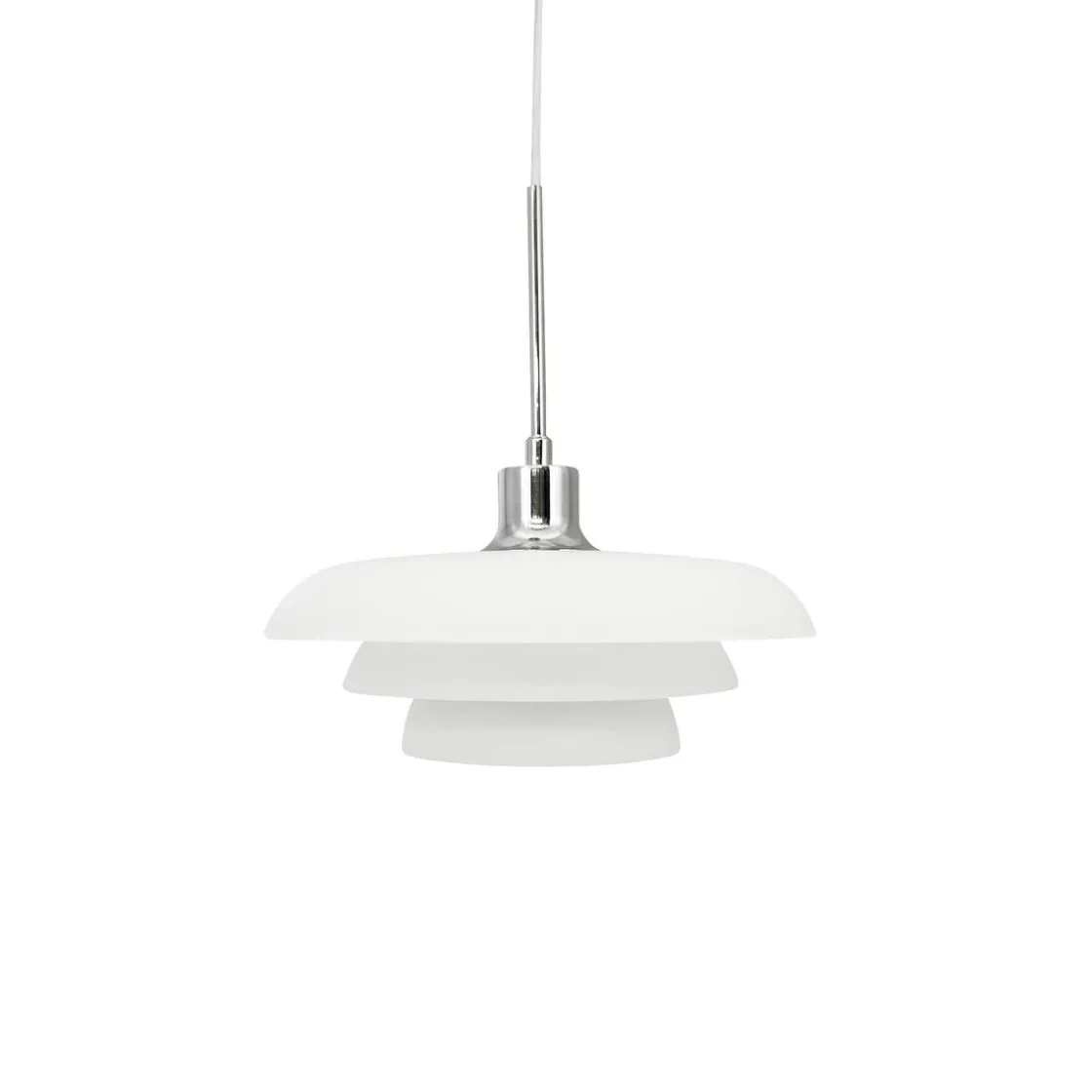 Med sin opalglass-finish og elegante kromdetaljer gir AVA Pendel et mykt og behagelig lys som skaper en koselig atmosfære. Det minimalistiske designet og de rene linjene gjør den ideell over spisebordet, på kjøkkenet eller i stuen.