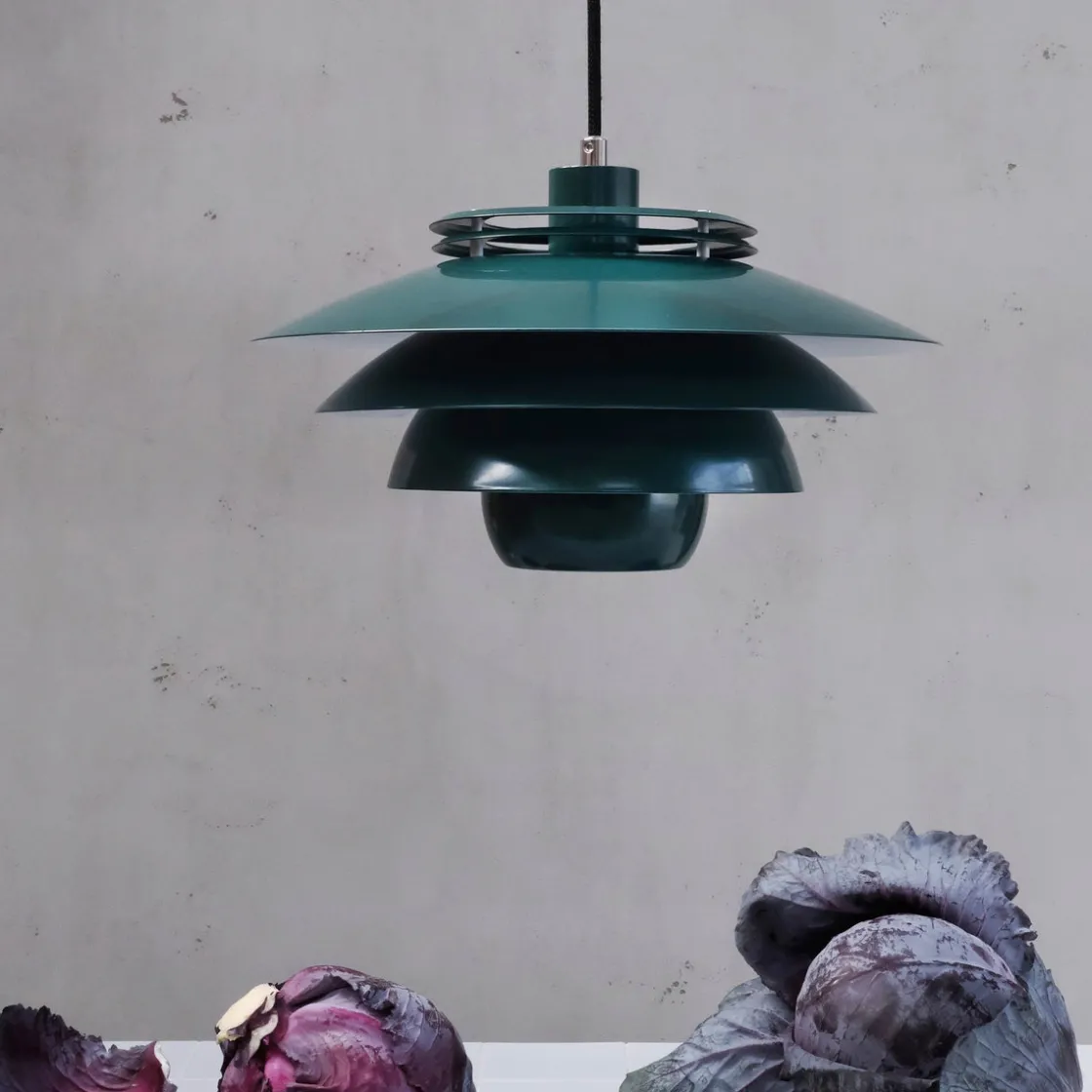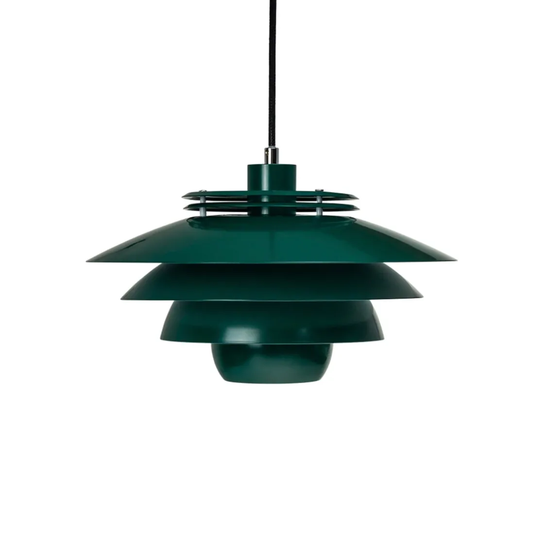 Din jakt på den perfekte lampen er over med vår Ejka pendellampe i den vakreste mørkegrønne fargen. Lampen er åpen i toppen og sprer lyset godt. Den har fire skjermer og finnes i fire forskjellige farger, som alle understreker den moderne interiørdesignen. Velg for eksempel en kald lyskilde så blir den flott over spisebordet.