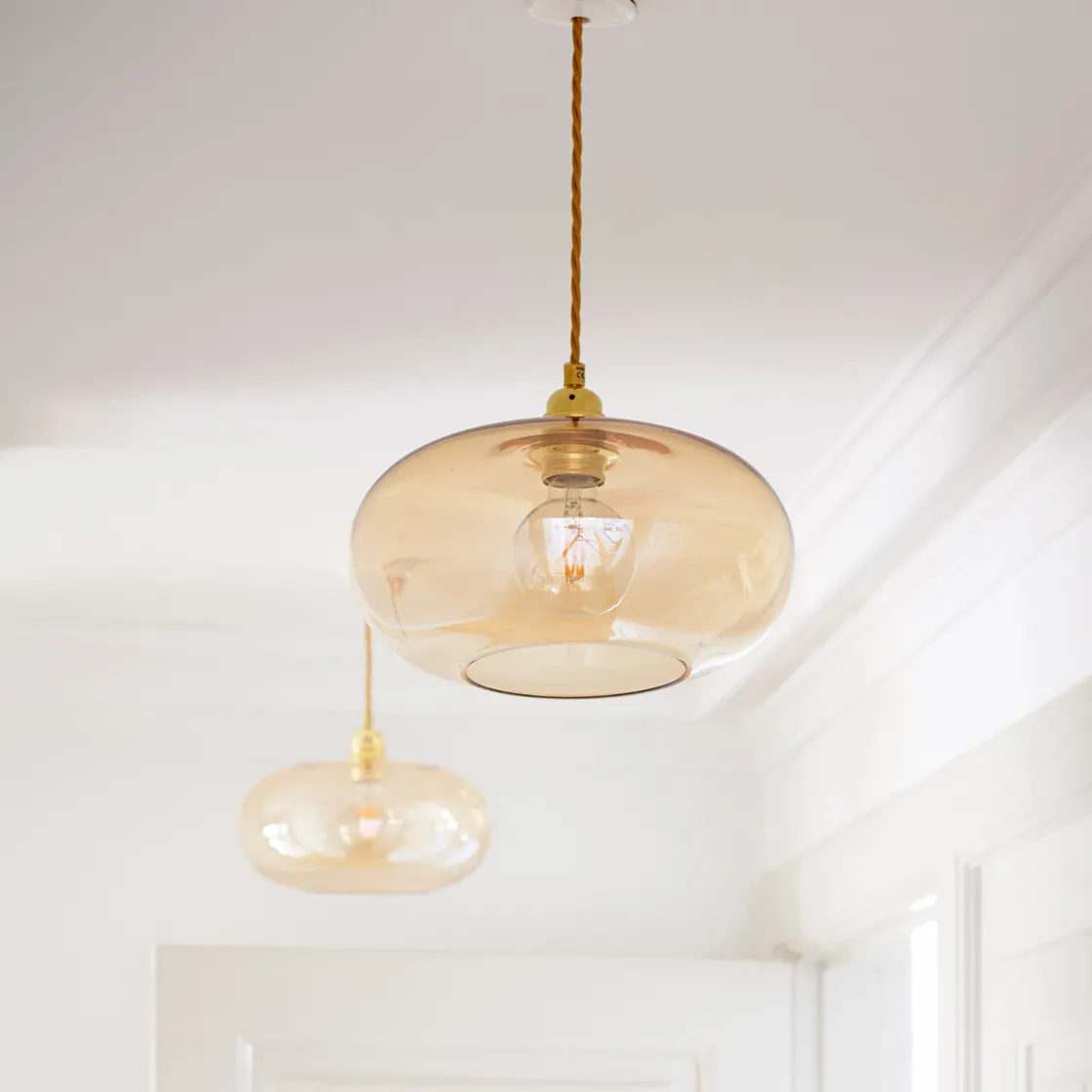 Pendelen leveres med et oppheng i en lekker gullfarge, samt tekstilkabel som er 2 meter lang.