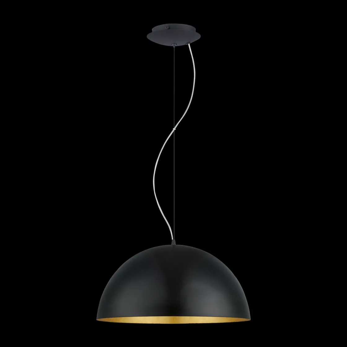 Lekker pendel fra EGLO med matt sort overflate og gullfarget innside. gullfargen gir lyset en behagelig, varm glød i tilleg til et pent utseende. Sort tak-kopp m/ justerbart vaieroppheng og ca 1.5m ledning.
