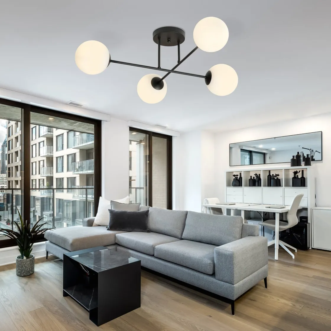 Roma er en moderne og stilfull taklampe serie, som finne med opal hvit eller røykfarget glasskuppel.