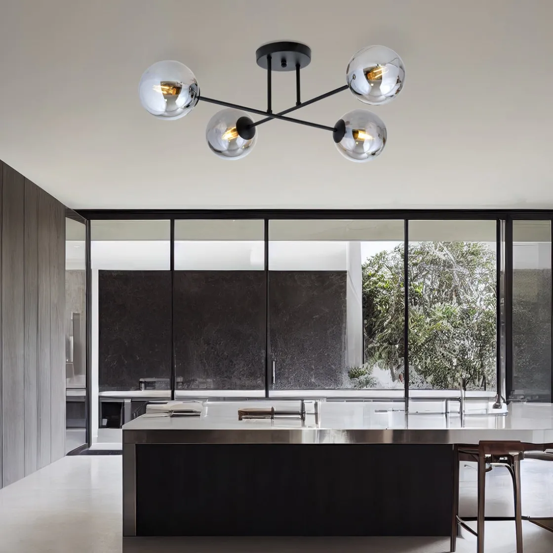 Roma er en moderne og stilfull taklampe serie, som finne med opal hvit eller røykfarget glasskuppel.