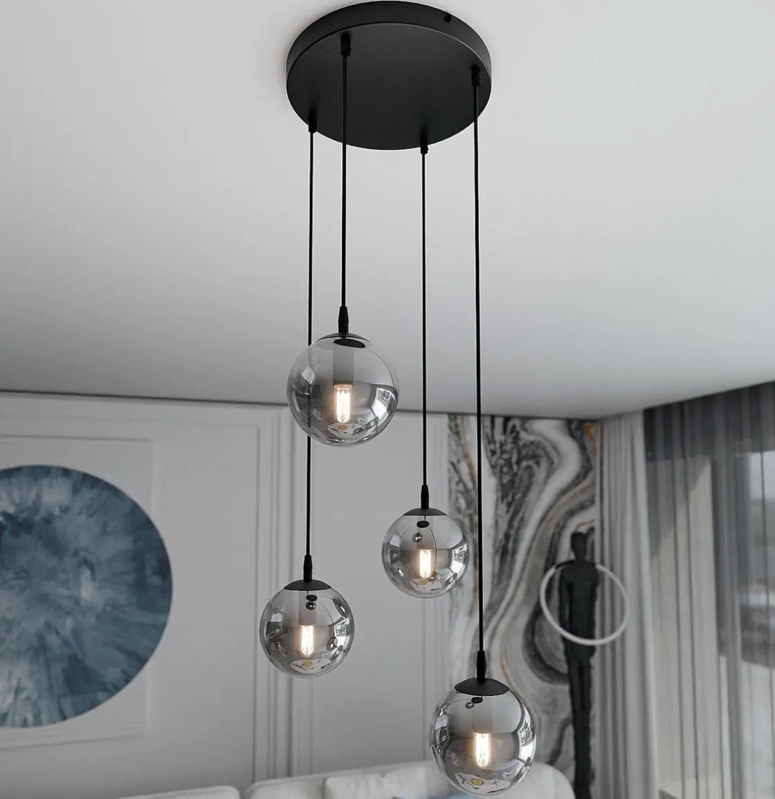 Cosmo er en nydelig pendelserie, som blant annet finnes som 1, 2, 3 eller 4 lys. Modellen er i fargen sort og kan velge mellom klart-, røykfarget- eller amberfarget glass.