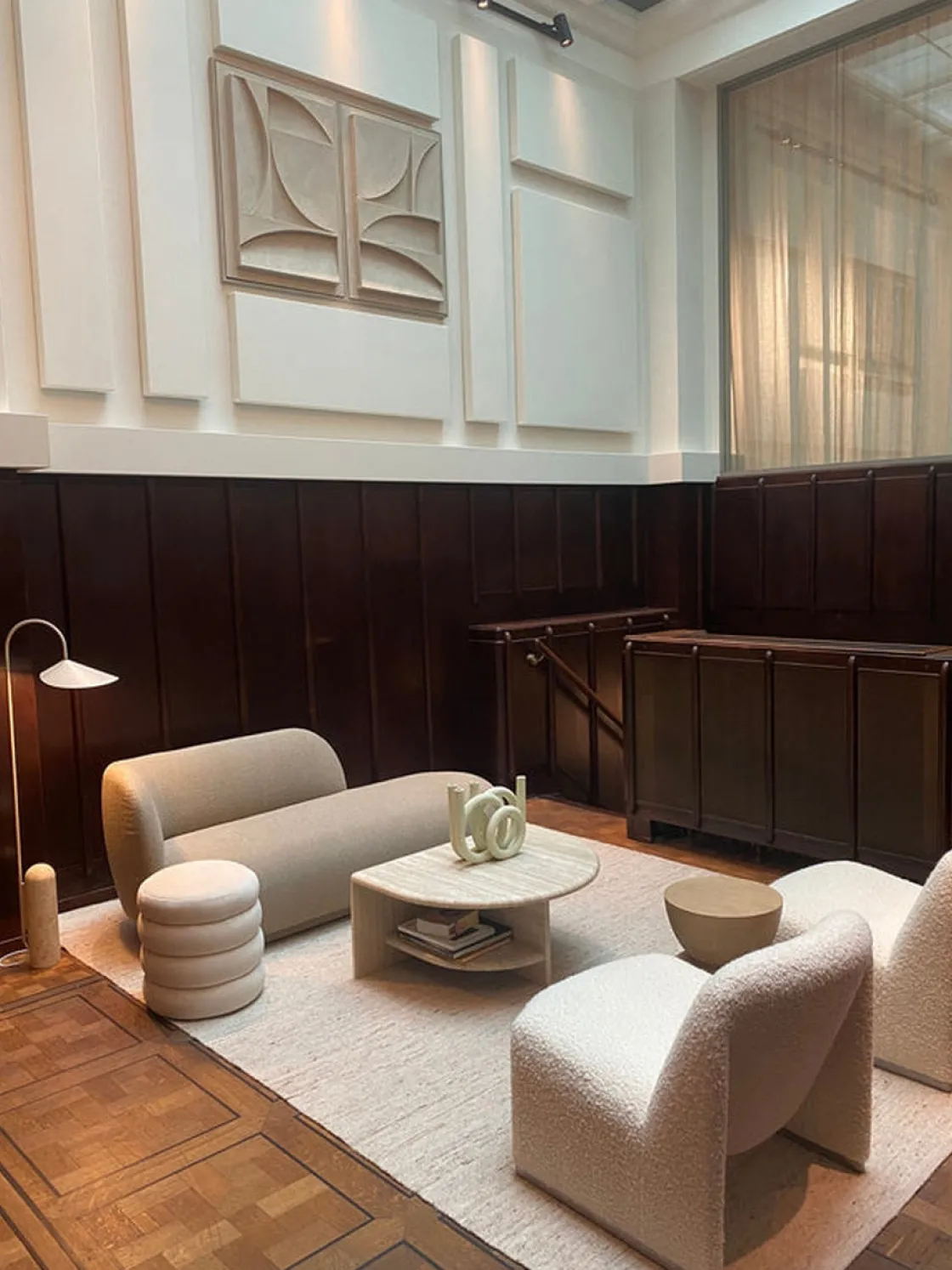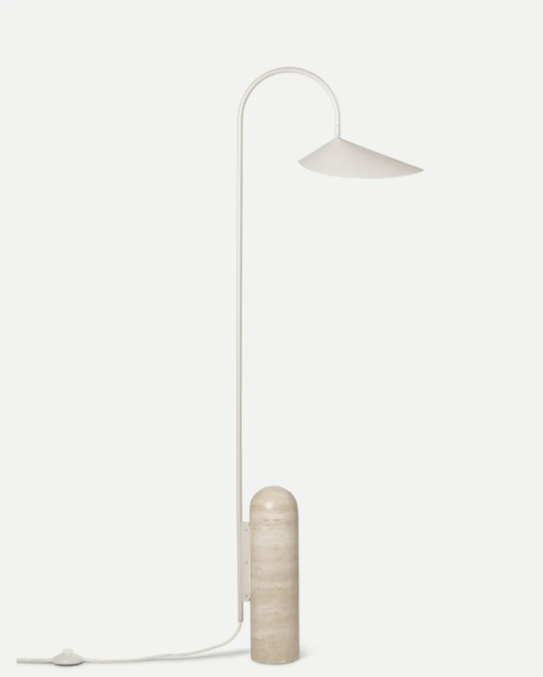 Arum Gulvlampe er en vakker lampe med et karakteristisk design som vil dekorere rommet ditt. Skjermen minner om ett blad og den er bevegelig så du kan styre lyset. Undersiden av skjermen er hvit så du får mest mulig utbytte av lyset. Lampefoten på lampen er av lys marmor.