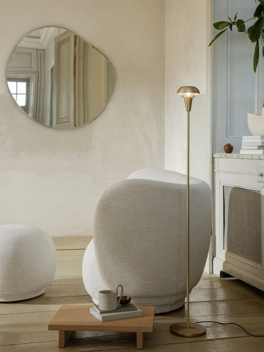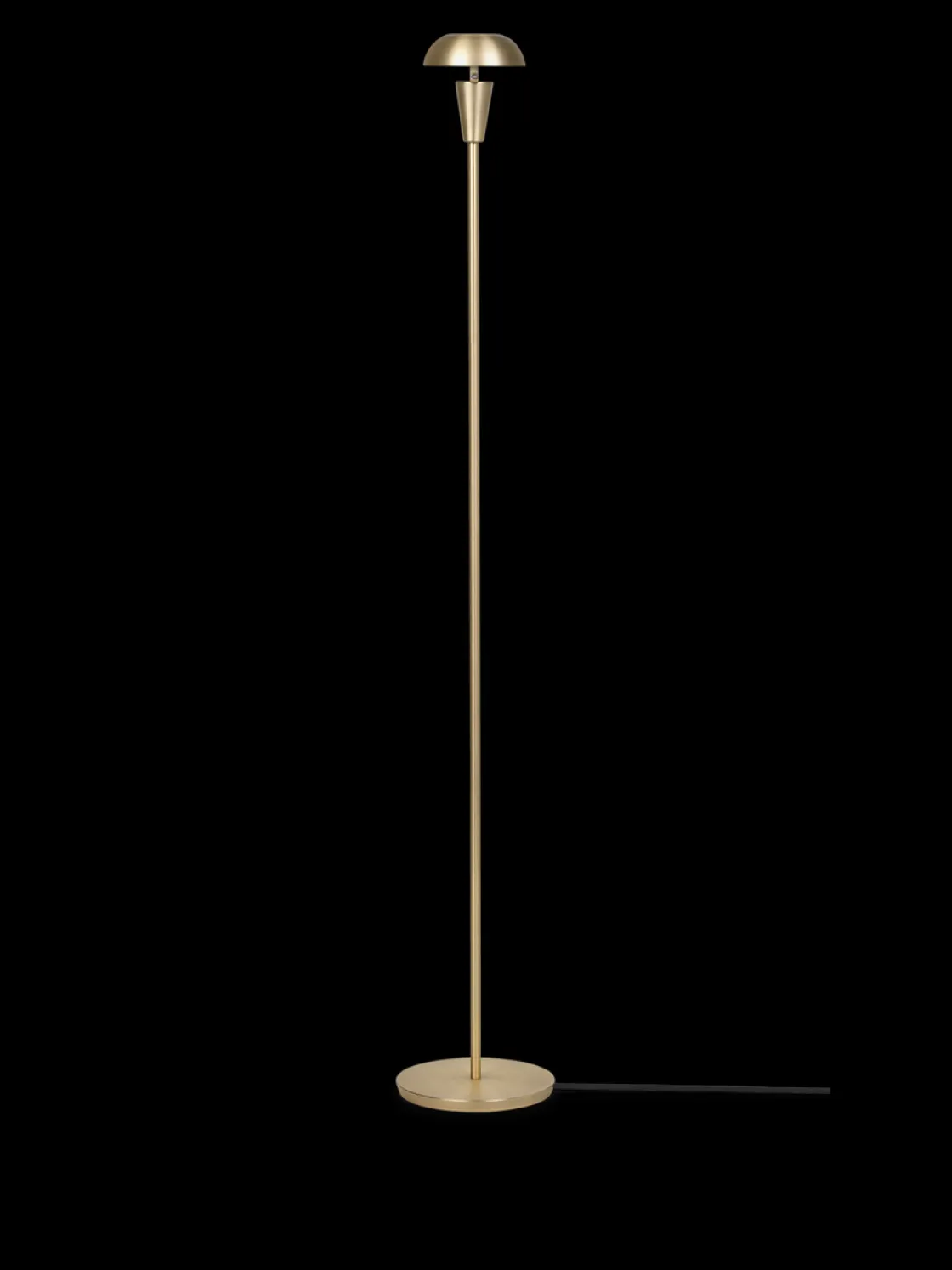 Tiny Floor Lamp fungerer som en funksjonell og dekorativ lyskilde. På grunn av sitt smale, høye og slanke utseende, passer denne gulvlampen i de fleste hjørner, eller bak sofaen der du trenger litt ekstra lys for å skape en koselig atmosfære. Tiny Floor Lamp er inspirert av industriell Art Deco, og utstråler enkelhet i både uttrykk og metallkonstruksjon. Det nyttige vippehodet gjør det mulig for deg å vippe skjermen for å skape et annet utseende på lampen, slik at den passer til atmosfæren i rommet. Den lille skyggen i kombinasjon med den høye, slanke basen, som spiller på proporsjoner, gir Tiny Floor Lamp sin karismatiske designegenskap og personlighet.