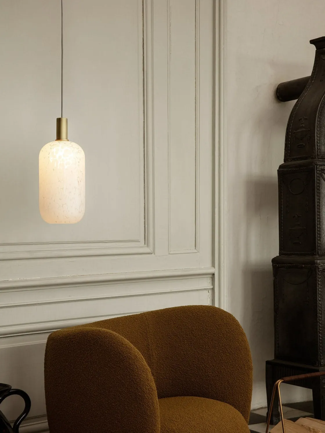Med Collect lyskonsept kan du designe din egen lampe – bare velg din favoritt lampeskjerm og anheng for å skape den ideelle belysningsløsningen for hjemmet ditt. Opal Shade har et fristende, uregelmessig mønster av monokrome flekker som sikrer en karakteristisk skygge når lampen slås på. Lampeskjermen er munnblåst og laget for hånd, hvert mønster er unikt, og ingen lampeskjermer er 100% identiske.