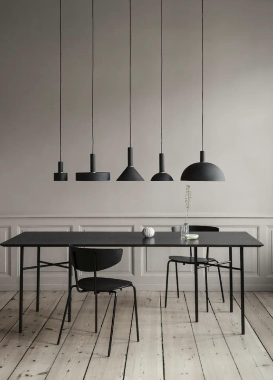 Med Collect serien fra Ferm Living kan du sette sammen din helt egen lampe! Du kan fritt velge mellom sokkel og lampeskjerm både i størrelse, farge og materiale. Alle delene kan enkelt settes sammen. Pulverlakkert metall og hvit innside gir deg en lampe som gir godt med lys ned i bordflaten. Egner seg fint over kjøkkenøya eller spisebordet.