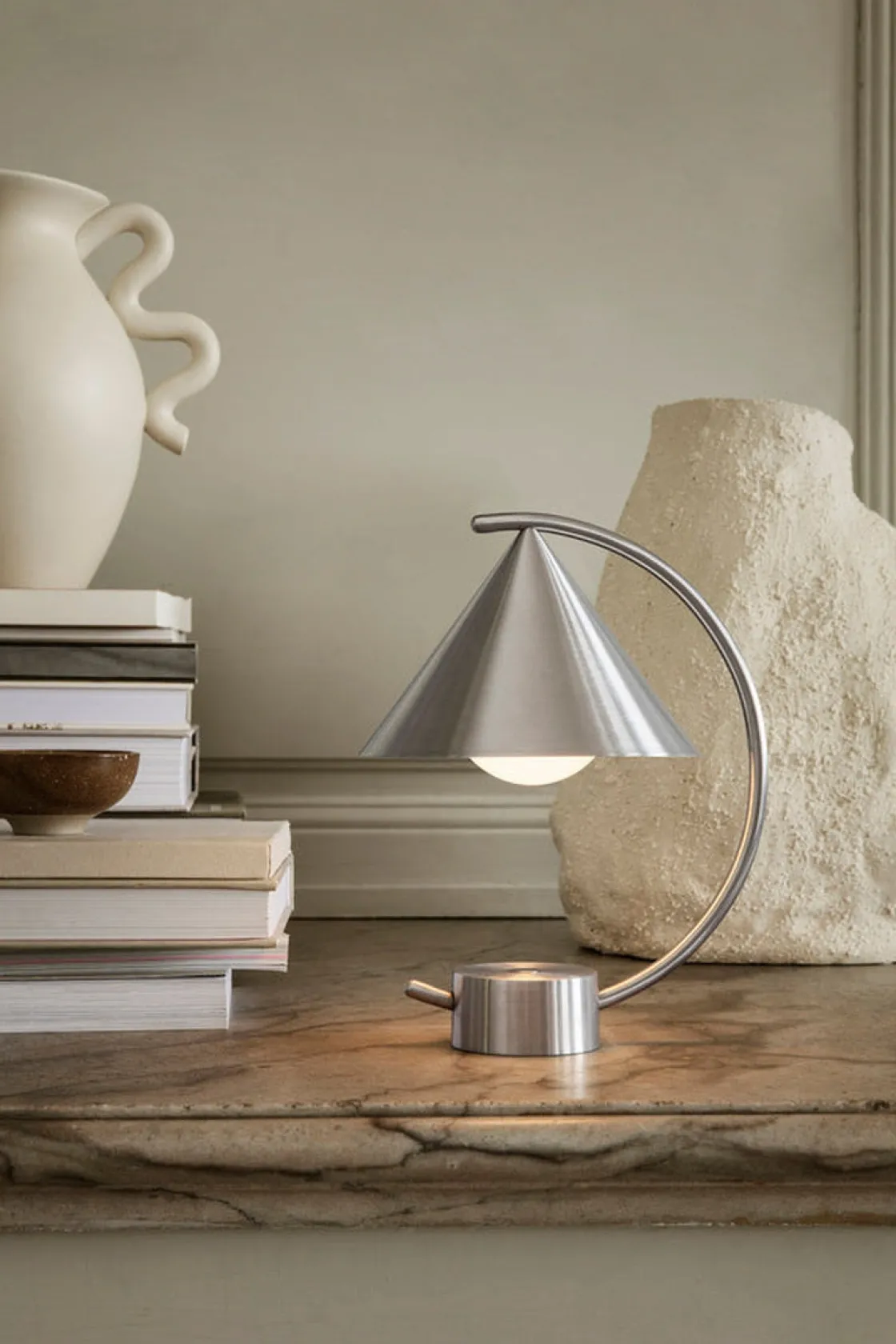 Meridian lampen er en bærbar vakker lampe som kan plasseres overalt. Den spennende skulpturelle lampen er laget i samarbeid med designstudioet Regular Company, lampen er basert på geometriske elementer. Lampen gir et rent, moderne uttrykk. Lampen er oppladbar og kan dimmes, lyser opptil 12 timer om gangen.