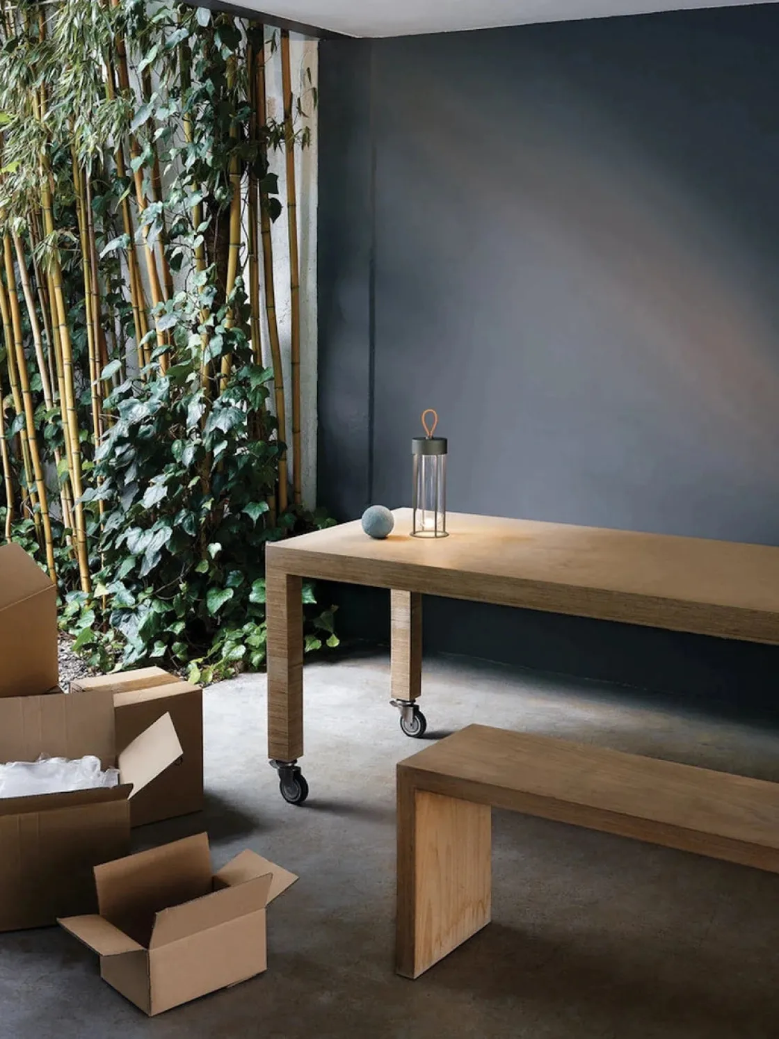 In Vitro fra Flos er en flott oppladbar bordlampe for utvendig og innvendig bruk, designet av Philippe Starck. In Vitro bordlampe har et flott design og er nydelig lampe å bruke på balkongen eler i stuen. Lampen kommer med integrert LED, den vil gi et behagelig lys og blender ikke. In Vitro lampen er oppladbar og bærbar og har seks timers batterilevetid. Lampen lades med USB-C-ladekabel. Lampen har innebygd led og har tre justerbare lysstyrker som justeres enkelt via den optiske berøringssensoren som er integrert i lampehodet. In Vitro har en smart og elegant stropp på toppen som gjør det lett å ta den med seg rundt.