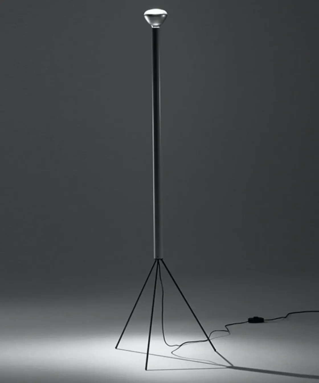 Luminator er en gulvlampe fra den Italienske lampeprodusenten FLOS som gir indirekte lys. Pære med reflektor. Jernstamme med forglasset emaljefinish. Malte galvaniserte metallben. Designet av Achille & Pier Giacomo Castiglioni, 1954