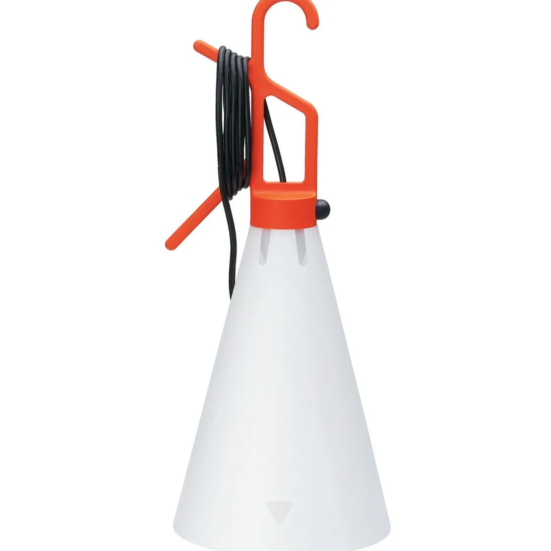 May Day er en smart, kreativ og multifunksjonell lampe som kan brukes på flere måter. Med innebygget krok kan den enkelt henges opp i taket, på en stang, settes på et bord eller la stå på gulvet. Den lange ledningen på nesten 5 meter kan surres rundt to hanker øverst på lampen – smart og gjennomtenkt. Lampen vil gi et generelt lys uten å blende, men vil også gi lys ned i bordflaten om den skulle henge over et spisebord. Lampen fungere fint som bordlampe da det er bryter på håndtaket. Finnes i flere farger. Designet av Konstantin Grcic, 2000