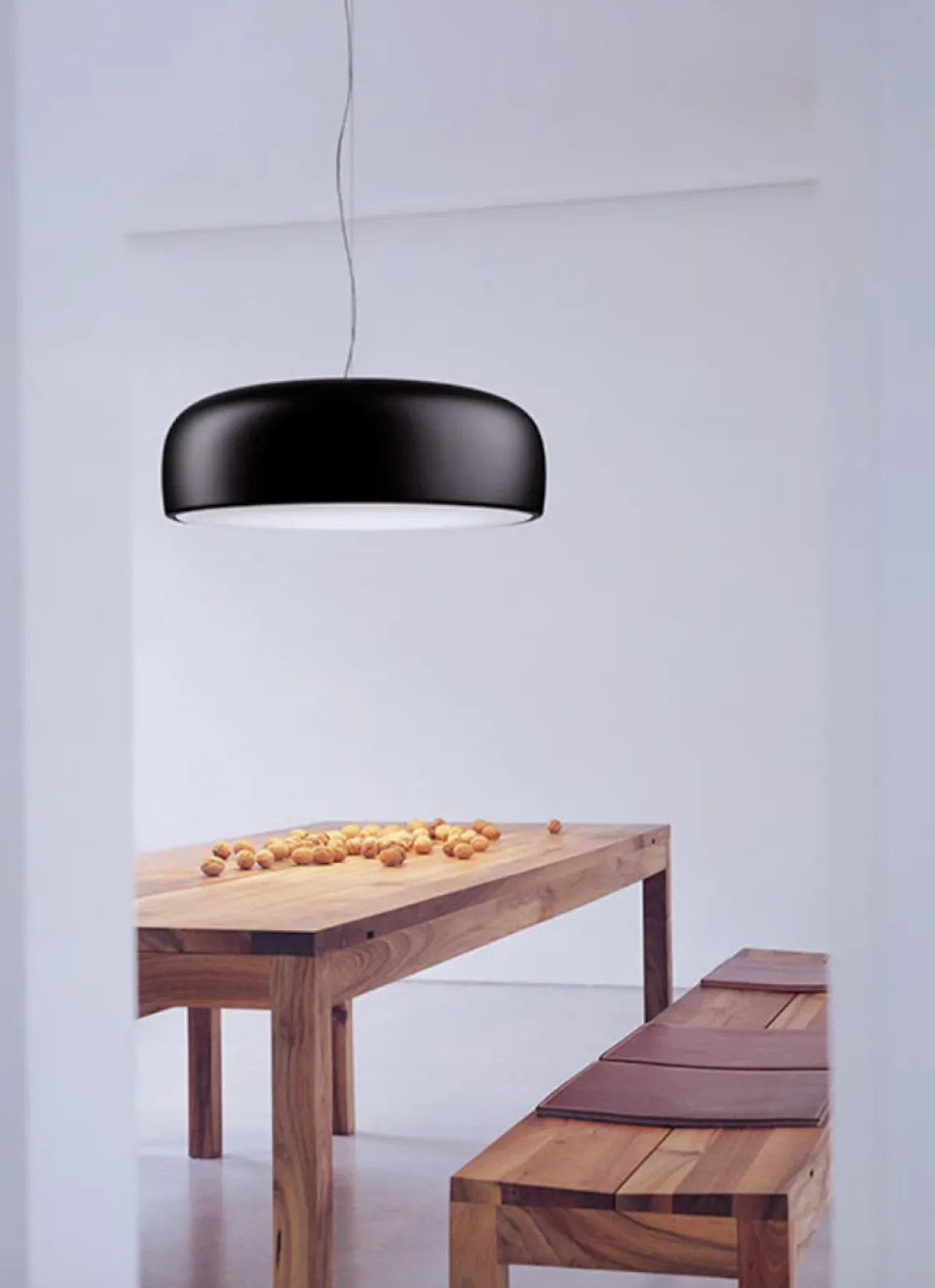 Smithfield ble designet av Jasper Morrison i 2009. Inspirert av den industrielle stilen, kombinert med mye lys, er dette en lampe som er like ideell for spisebordet som over arbeidsbordet. Hele 30 watt LED leverer denne, og gir et mykt direkte lys uten å blende. Den er fin å dimme slik at en kan få stemningslys eller arbeidslys, etter behov.