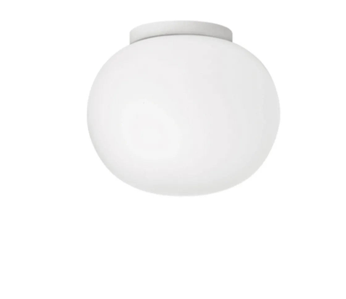 Glo-Ball C/W Zero vegg/tak er en enkel men genial lampe. Den enkle formen kombinert med godt lys gjør denne lampen til en meget anvendelig lampe som passer i alle rom. Det opale glasset gir et jevnt og behagelig lys som ikke blender. Passer godt i gangen, trappeoppgangen eller på badet og kan brukes på vegg eller i taket. Den er laget av ett stykke hvitt, munnblåst glass og minner mest om en måne med jevn, generell belysning. Glo-Ball er en del av en stor serie bordlamper, gulvlamper, vegg- og taklamper. Designet av Jasper Morrison i 2009