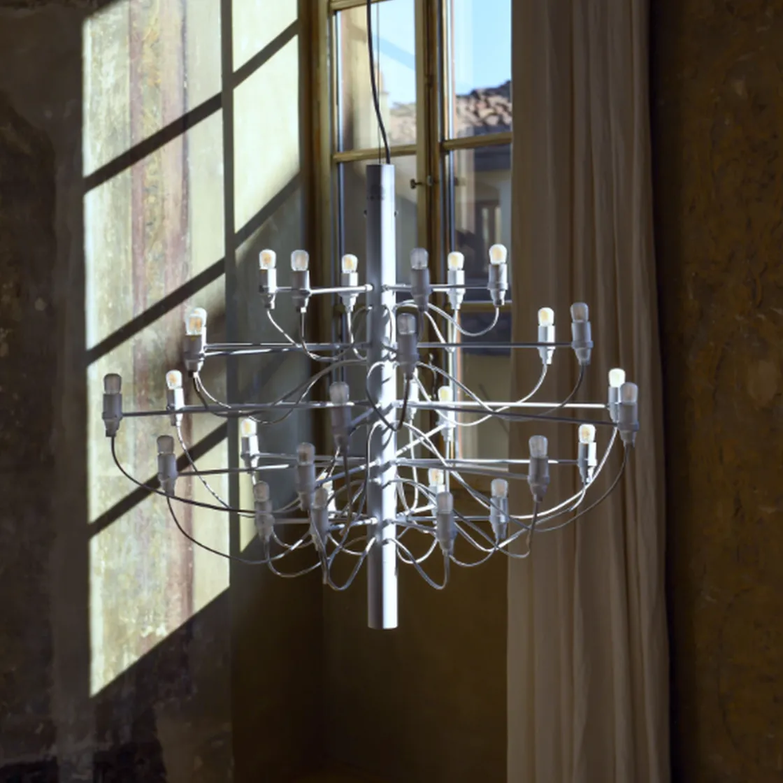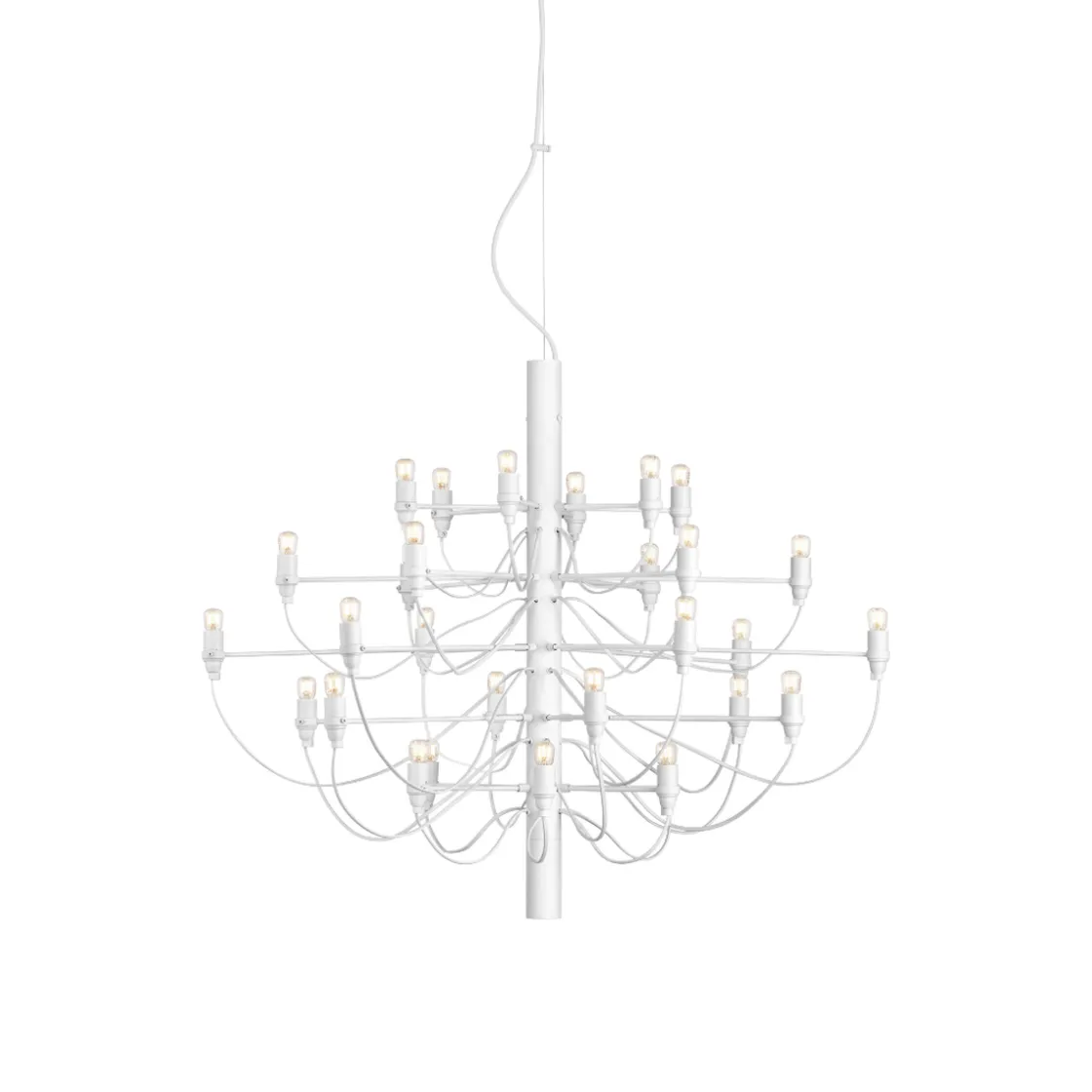 Lysekronen 2097 fra FLOS er en tidløs og klassisk lampe som hever ethvert rom. Den er tilgjengelig i sølv, messing, hvit og matt sort og i fire størrelser. Lysekronen 2097 ble designet av Gino Sarfatti i 1958 og har blitt ett lampeikon. Dette er en tidløs designklassiker og lysekronen gir mye lys til rommet. Flott å bruke over spisebord, over salongbordet, på soverom og i trappeoppgang.