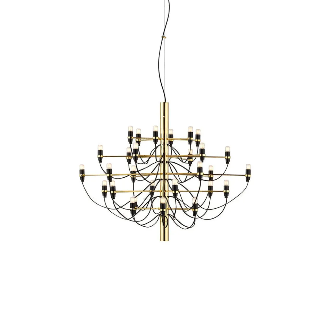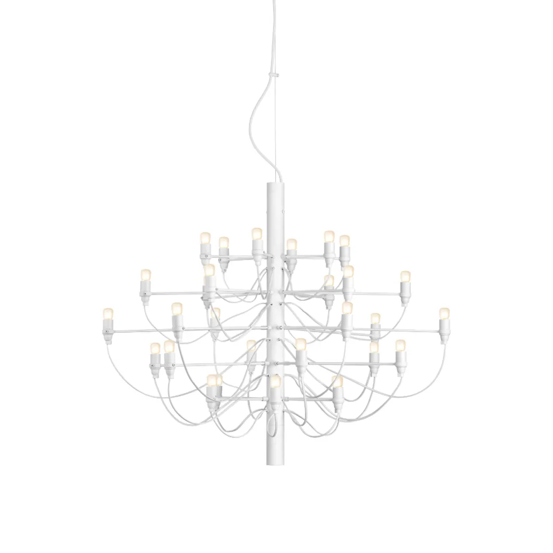 Lysekronen 2097 fra FLOS er en tidløs og klassisk lampe som hever ethvert rom. Den finnes i hvit, sølv, messing og matt sort og i fire størrelser. Lysekronen 2097 ble designet av Gino Sarfatti i 1958 og har blitt ett lampeikon. Dette er en tidløs designklassiker og lysekronen gir mye lys til rommet. Flott å bruke over spisebord, over salongbordet, på soverom og i trappeoppgang.