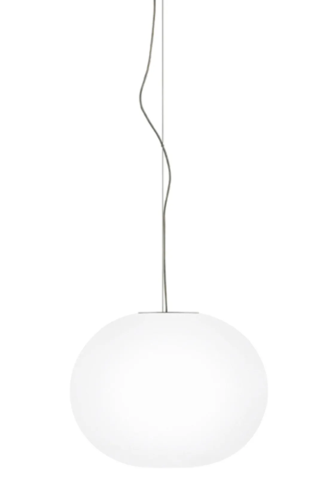 FLOS Glo-Ball S1 takpendel er en enkel men genial lampe. Den enkle formen kombinert med godt, generelt lys gjør denne lampen til en meget anvendelig lampe som passer i de fleste rom. Den er laget av ett stykke hvitt, munnblåst glass og minner mest om en måne med jevn, generell belysning. Glo-Ball er en del av en stor serie bordlamper, gulvlamper, vegg- og taklamper. Designet av Jasper Morrison i 1998. Lampen er flott å bruke over spibord, over salongbord, på soverom, i trappeoppgang og i en gang dersom du har god takhøyde.