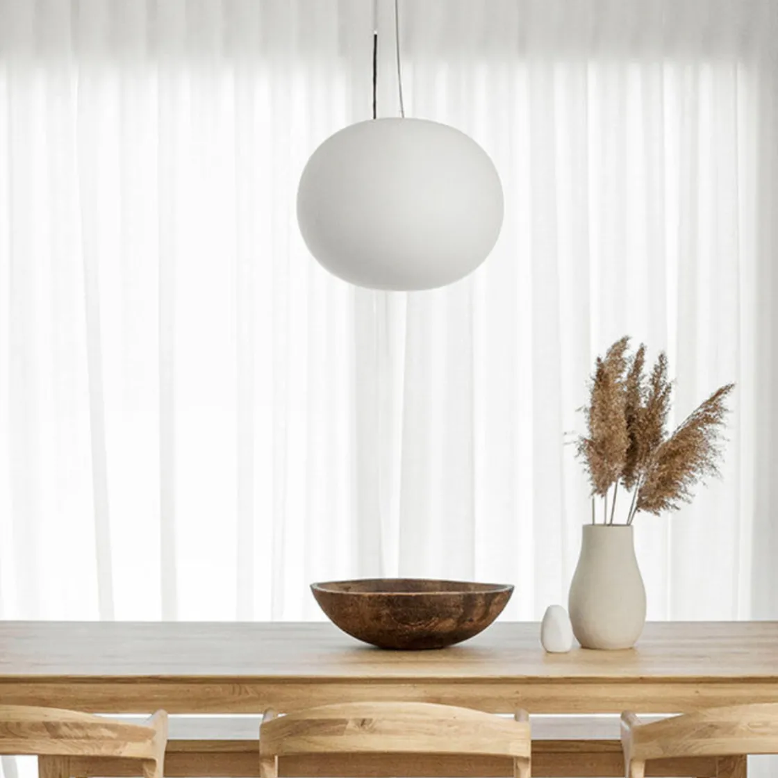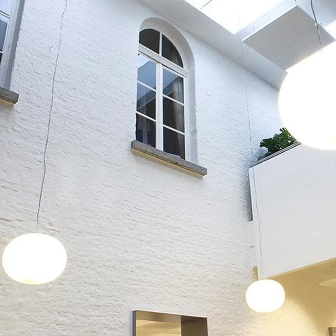 Glo-Ball S2 takpendel er en enkel men genial lampe. Den enkle formen kombinert med mye generelt lys gjør denne lampen til en meget anvendelig lampe som passer i de fleste rom. Den er laget av ett stykke hvitt, munnblåst glass og minner mest om en måne med jevn, generell belysning. Glo-Ball er en del av en stor serie bordlamper, gulvlamper, vegg- og taklamper. Designet av Jasper Morrison i 1998. Lampen er flott å bruke over spibord, over salongbord, på soverom, i trappeoppgang og i en gang dersom du har god takhøyde.