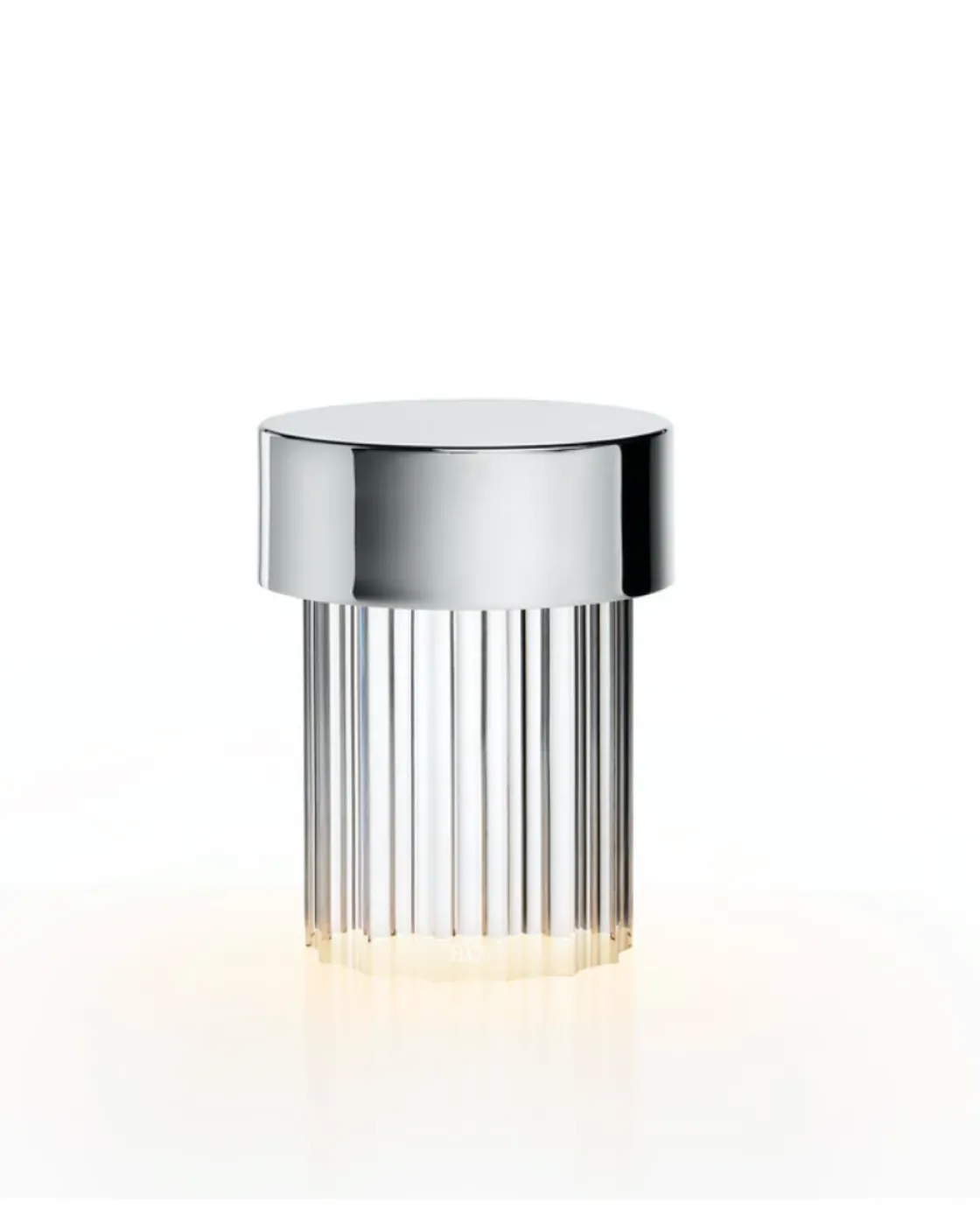 Flos Last Order bordlampe ble designet av M. Anastassiades. Det er en oppladbar bordlampe som diffunderer lys gjennom en gjennomsiktig riflet solid glassbase hvis form refererer til til arkitektonisk typologi av den gamle kolonnen. Toppdekselet kommer i en kombinasjon av forskjellige metall- og fargevarianter: rustfritt stål, messing, kobber i sateng eller grønt opalbelegg.